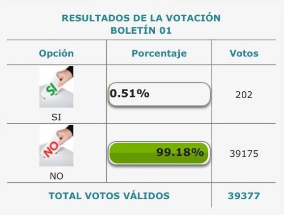 La consulta popular minera en el municipio de Fusagasugá cerró con 39.377 votos superando el umbral de participación que era 34.846 votos. Los habitantes le dijeron que no a la minería, rechazaron el fracking y la explotación petrolera en el municipio con 39.175 votos.