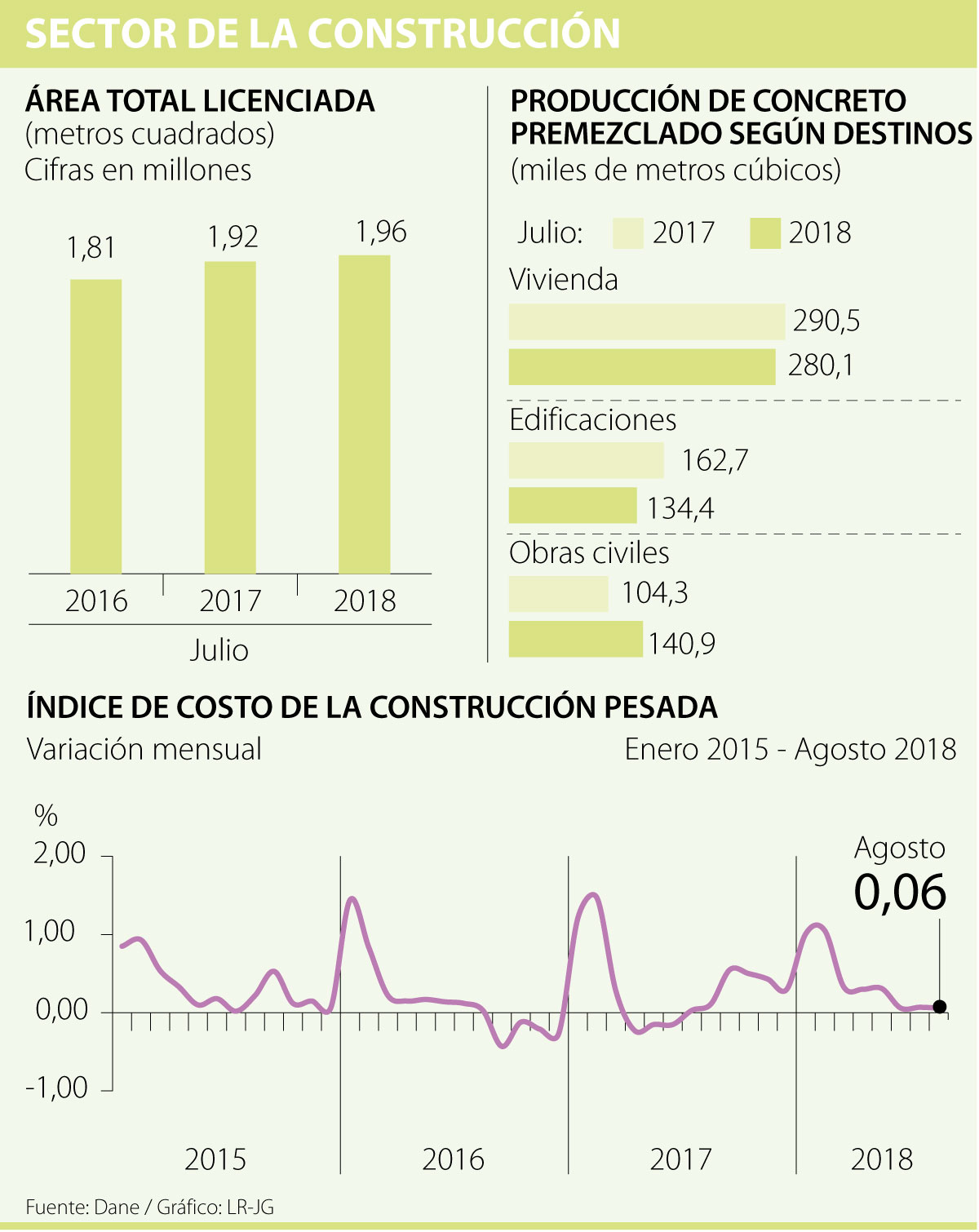 El Departamento Nacional de Estadística (Dane) publicó varios indicadores sobre construcción y los resultados no son muy alentadores, pues estos muestran que el sector aún no se recupera de la recesión que ha sido reportada en el informe del PIB del primer y del segundo trimestre. De hecho, entre abril y junio de este año creció negativamente 6,6%.