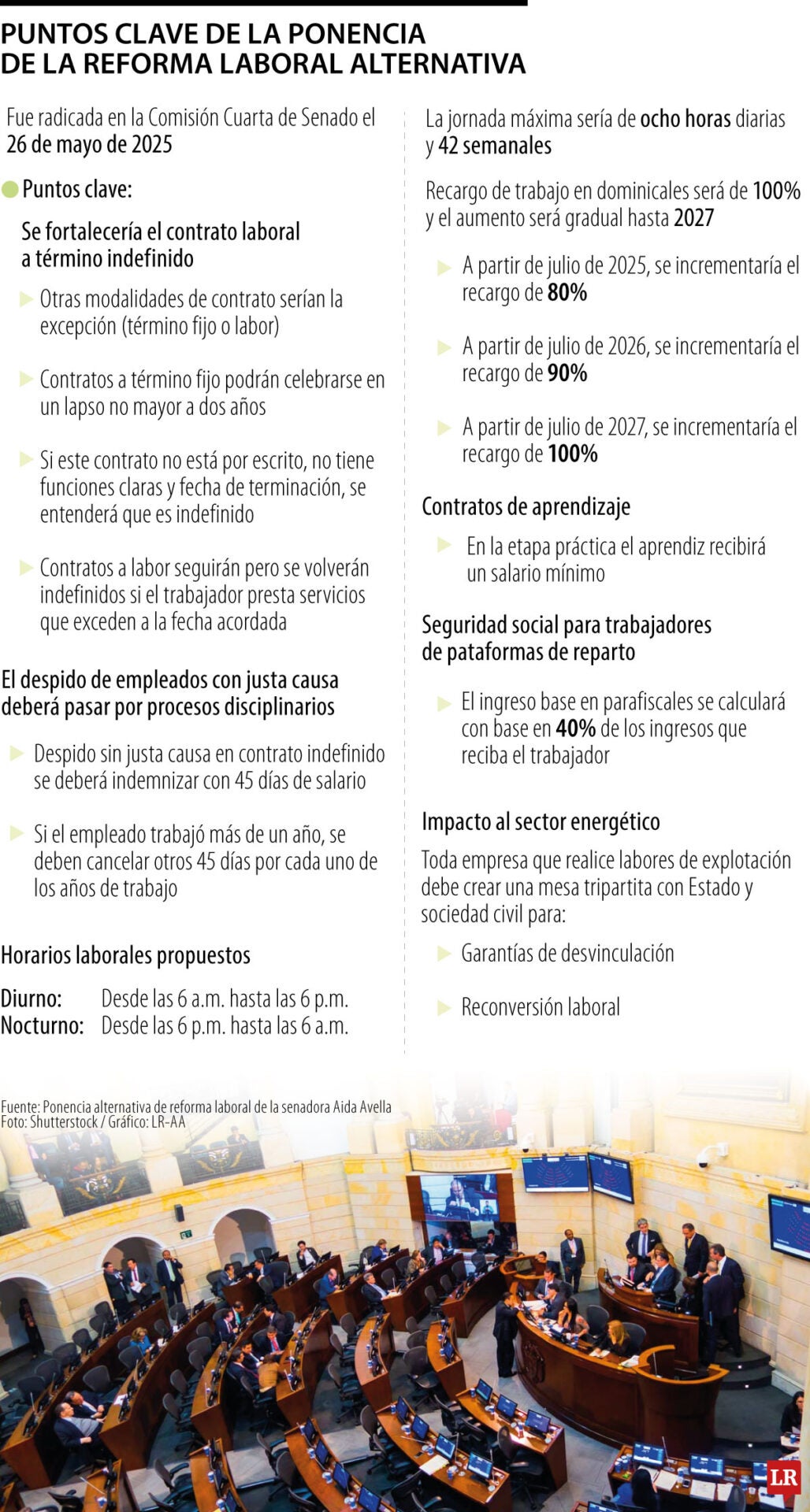 El Congreso de la República publicó la ponencia alternativa de la reforma laboral de la senadora del Pacto Histórico, Aida Avella. Los puntos que aborda la iniciativa son la protección de las mujeres, promoción del contrato a término indefinido, nuevos procesos para despidos con justa causa, estabilidad laboral reforzada, entre otros.