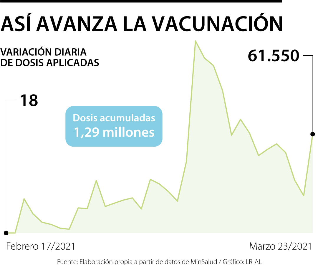 Esto es un proceso continuo y creciente, por lo tanto, hemos venido aumentando la capacidad. Arrancamos con niveles de 20.000, luego pasamos a 40.000, hemos tenido promedios de 80.000 y picos donde hemos sobrepasado 100.000 vacunados por día. Estamos trabajando para que en abril, que es un mes en donde recibiremos ocho millones de dosis, estemos en niveles superiores a 150.000 vacunados diarios.