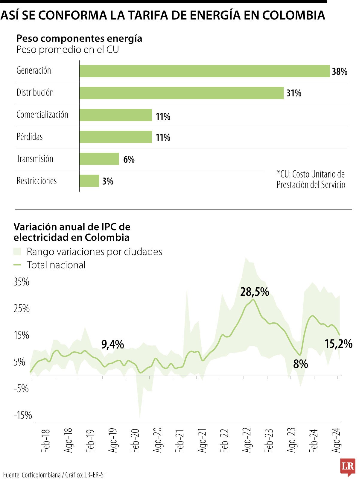 Corficolombiana detalla que el CU no es el mismo en todas las ciudades, teniendo en cuenta que esas referencias están reguladas por la Creg, y que pueden variar de acuerdo a las empresas que operan en determinada región y a su situación de suministro, entre otras variables.
