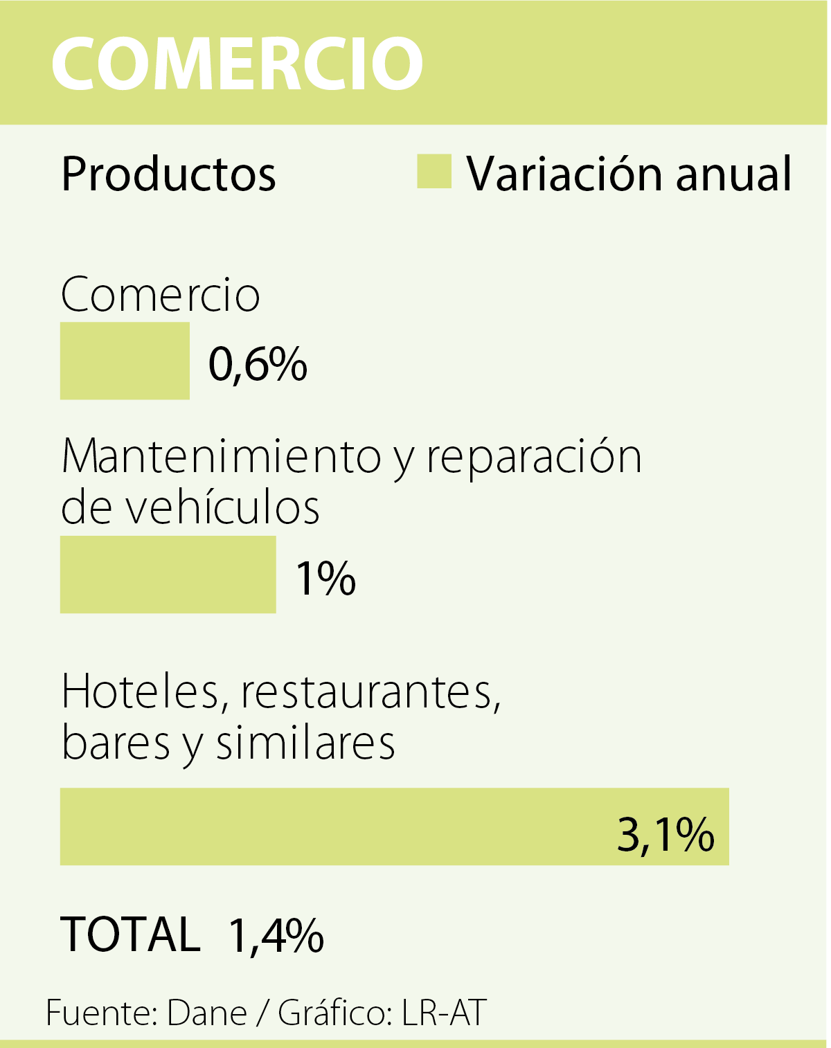 Comercio tiene una recuperación, con variación de 1,4%