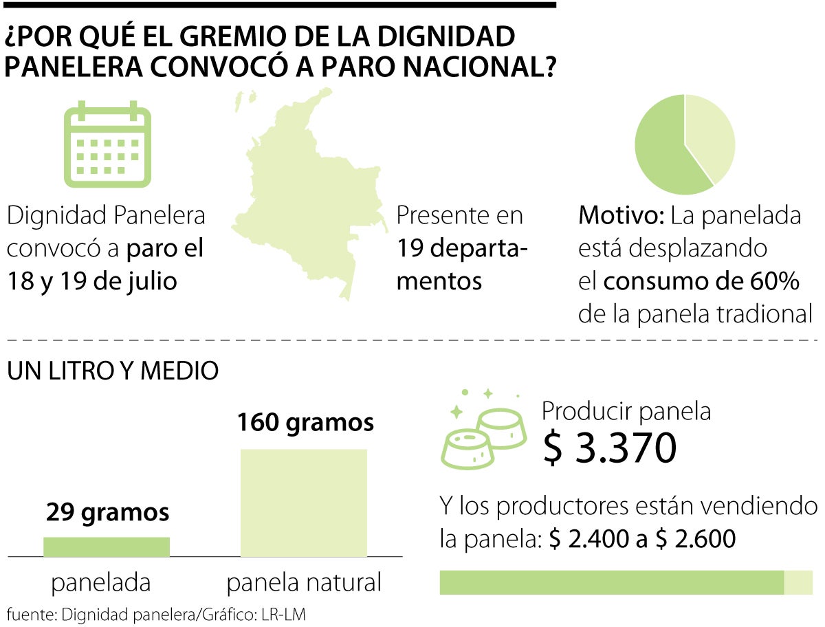 Los productores de panela del gremio Dignidad Panelera, que están en 19 departamentos de Colombia, enfrentan una crisis económica que señalan se remonta a hace siete meses. Por esta razón, convocaron a un paro que inició ayer y se extenderá hasta hoy. Aseguran que la crisis no solo es por el alza de los agroinsumos, sino también por los productos artificiales que han salido al mercado.