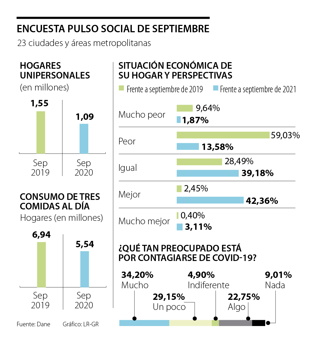 El Dane reveló que, por la emergencia generada por el coronavirus, se pasó de 1,55 millones de hogares unipersonales a 1,09 millones en septiembre de 2020