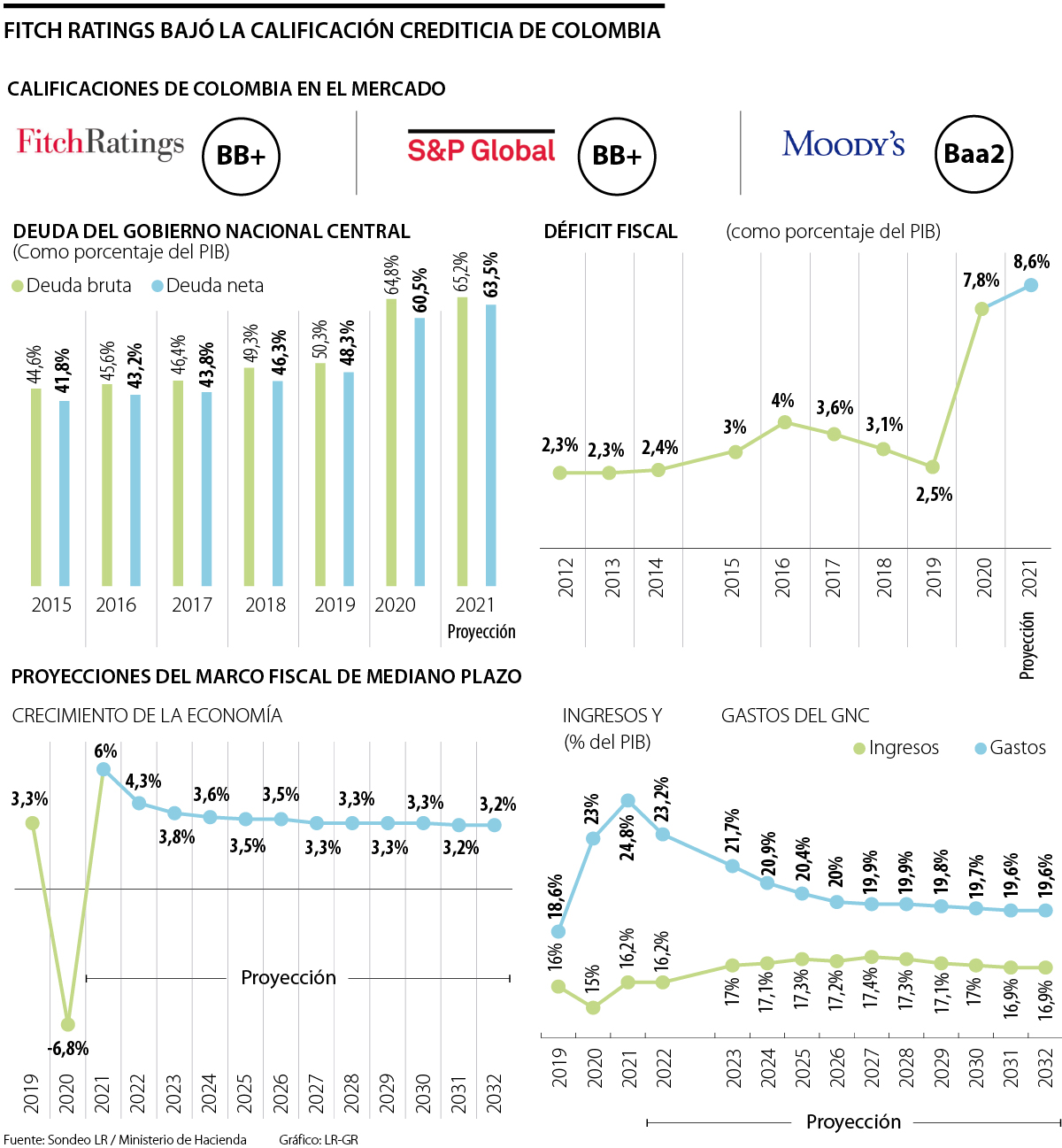 Con el anuncio que hizo Fitch Ratings, ya son dos las firmas que tomaron la decisión de bajar la calificación crediticia de Colombia de BBB- a BB+ con perspectiva estable, con lo que, según los expertos, se confirmó que el país perdió su grado de inversión.