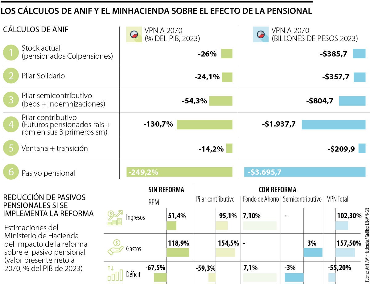 Anif se refiere al pasivo pensional y el Gobierno al déficit pensional. Ambas son estimaciones del valor presente de los flujos a 2070