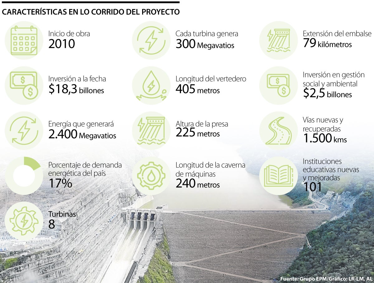 A pesar de la seguridad que tanto Giraldo como Jorge Andrés Carrillo, gerente de EPM, manifiestan en sus declaraciones -pues Carrillo ha dicho que todo está dado para entrar a operar antes del 30 de noviembre, el vicepresidente del proyecto afirmó que sí le han pedido más plazo a la Comisión de Regulación de Energía y Gas (Creg). “Sería ideal contar con un par de semanas más para llevar a cabo de manera más tranquila algunas de las pruebas técnicas, las cuales se adelantan con aguas dinámicas que, a fin de cuentas, es lo que va a estar sucediendo en este proyecto todos los días”.