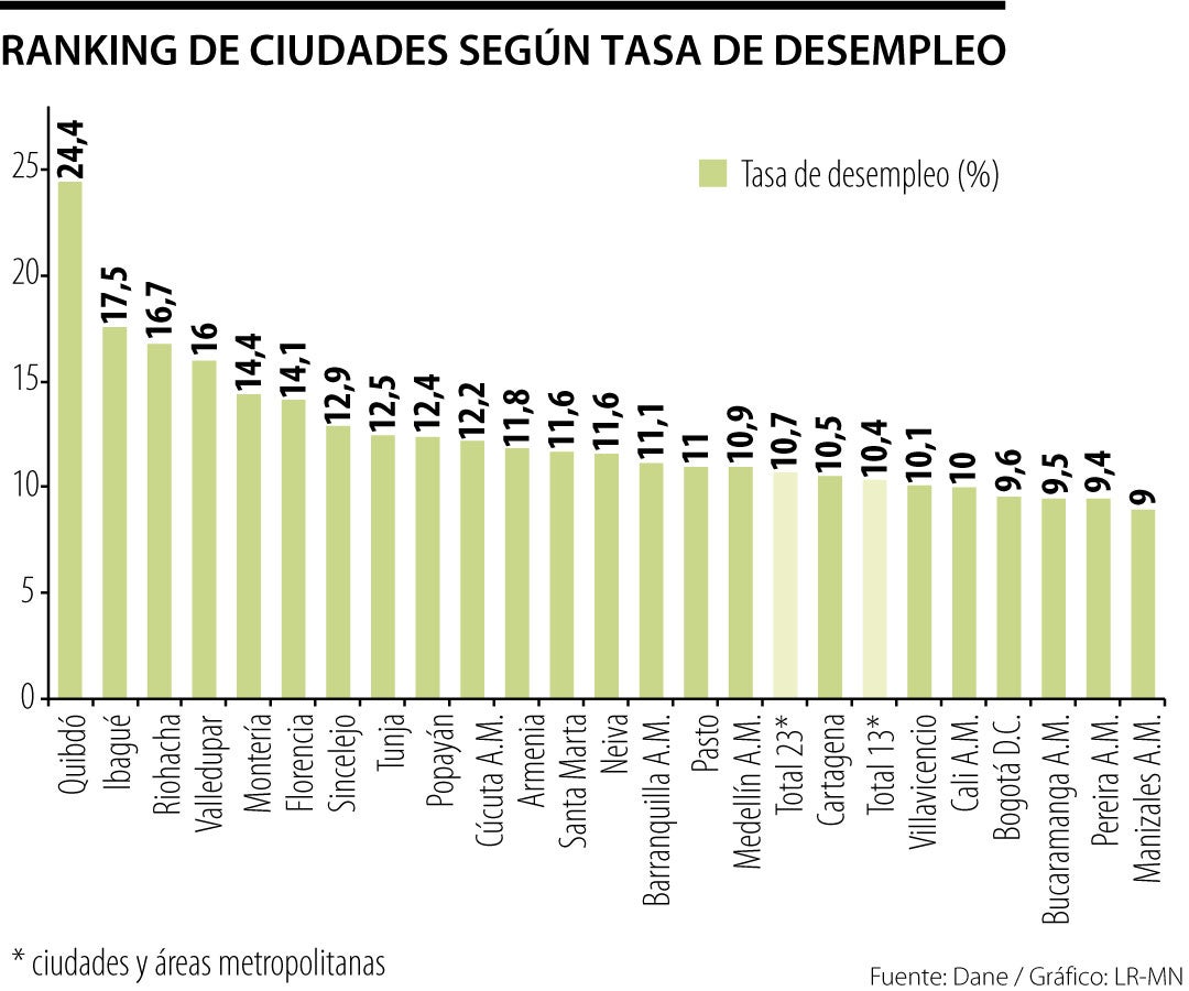 De acuerdo con el Dane, Tunja, Florencia, Popayán, Valledupar, Quibdó, Neiva, Riohacha, Santa Marta, Armenia y Sincelejo tuvieron 1,1 millones de personas ocupadas y contribuyeron con 0,4 p.p.