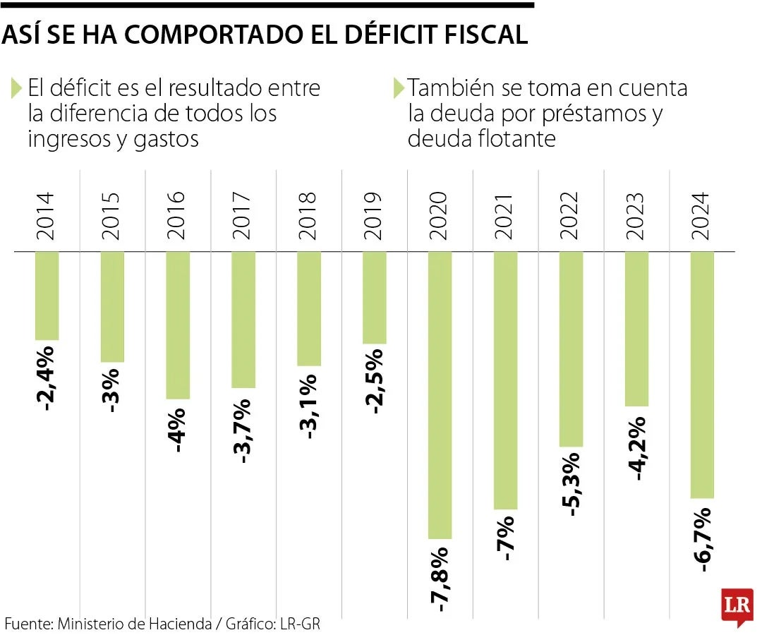Señaló que el déficit colombiano se incrementó hasta 6,7% del PIB en 2024 desde 4,2% en 2023, lo que lo sitúa 1,1 puntos porcentuales por encima de la meta fijada por las autoridades en el marco fiscal de mediano plazo.