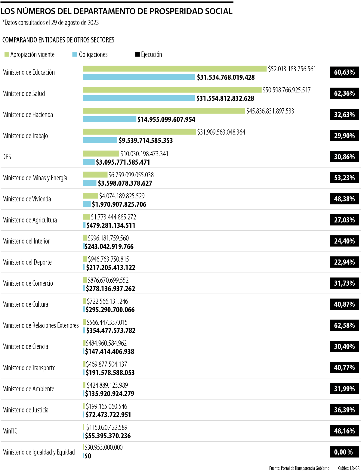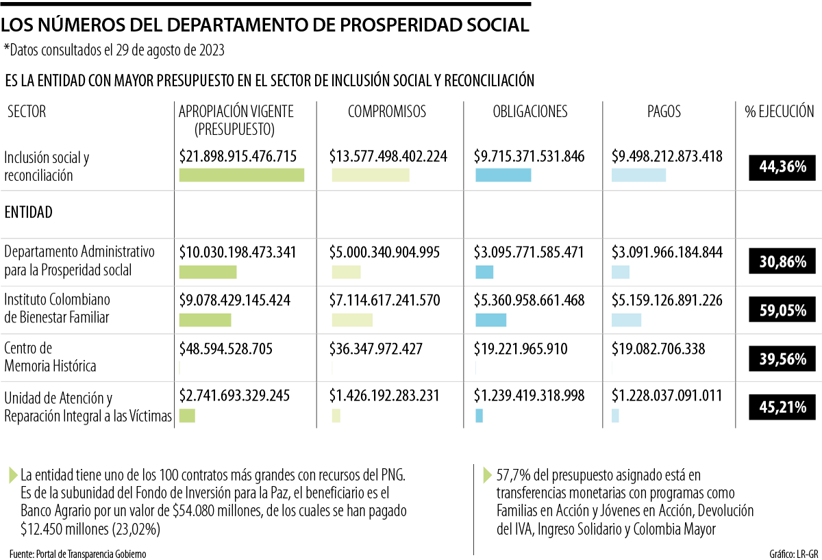 Sí se revisa en qué se ejecuta la mayor parte del presupuesto, en el portal de transparencia se registra que 57,7% del presupuesto asignado está en transferencias monetarias con programas como Familias en Acción y Jóvenes en Acción, Devolución del IVA, Ingreso Solidario y Colombia Mayor.