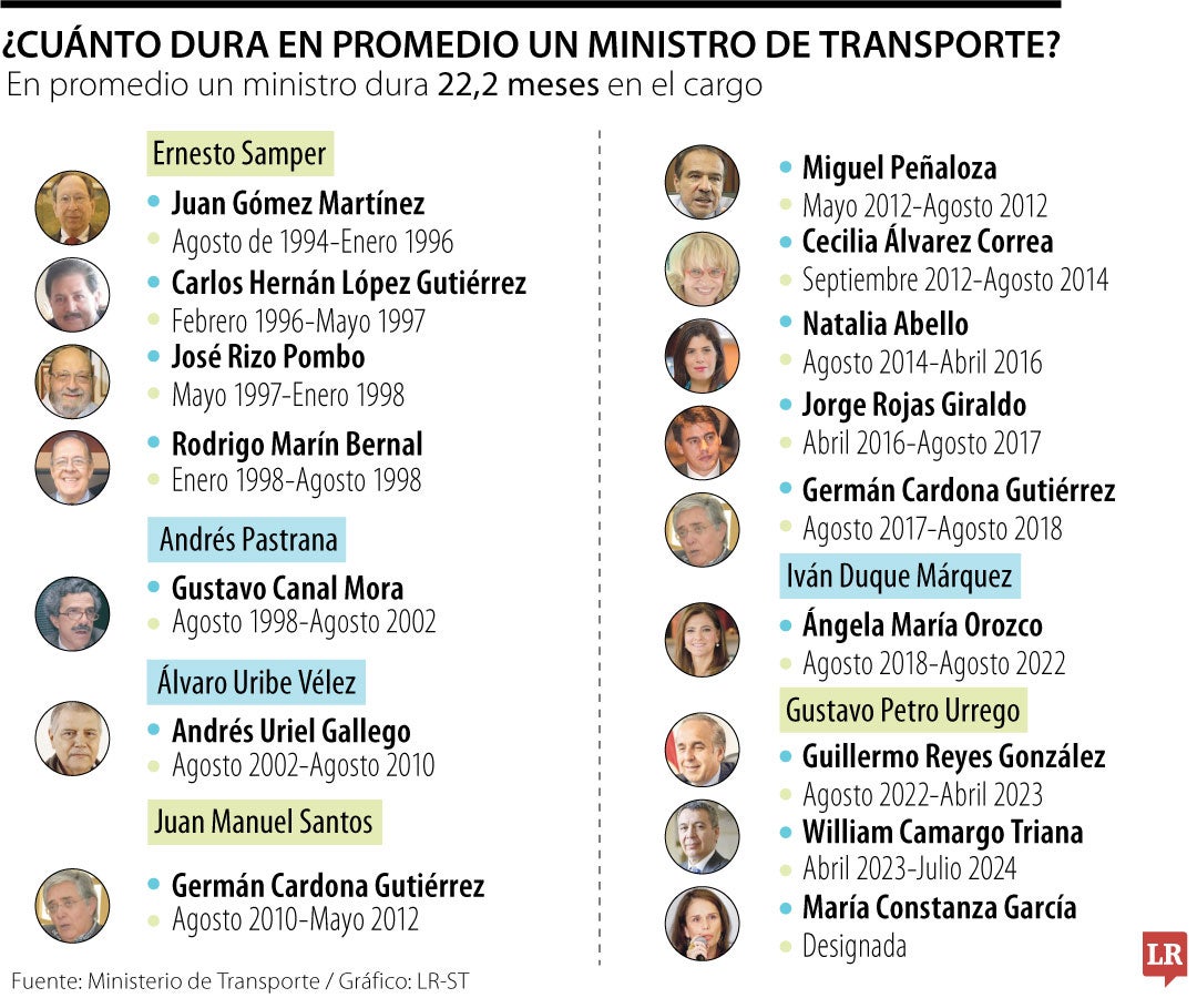 En promedio, un ministro de Transporte desde el año 2000 dura 25,4 meses en el cargo. María Constanza García estuvo muy por debajo de la media, al acumular siete meses al frente de esa cartera, tras llegar en sustitución de William Camargo en julio del año pasado.
