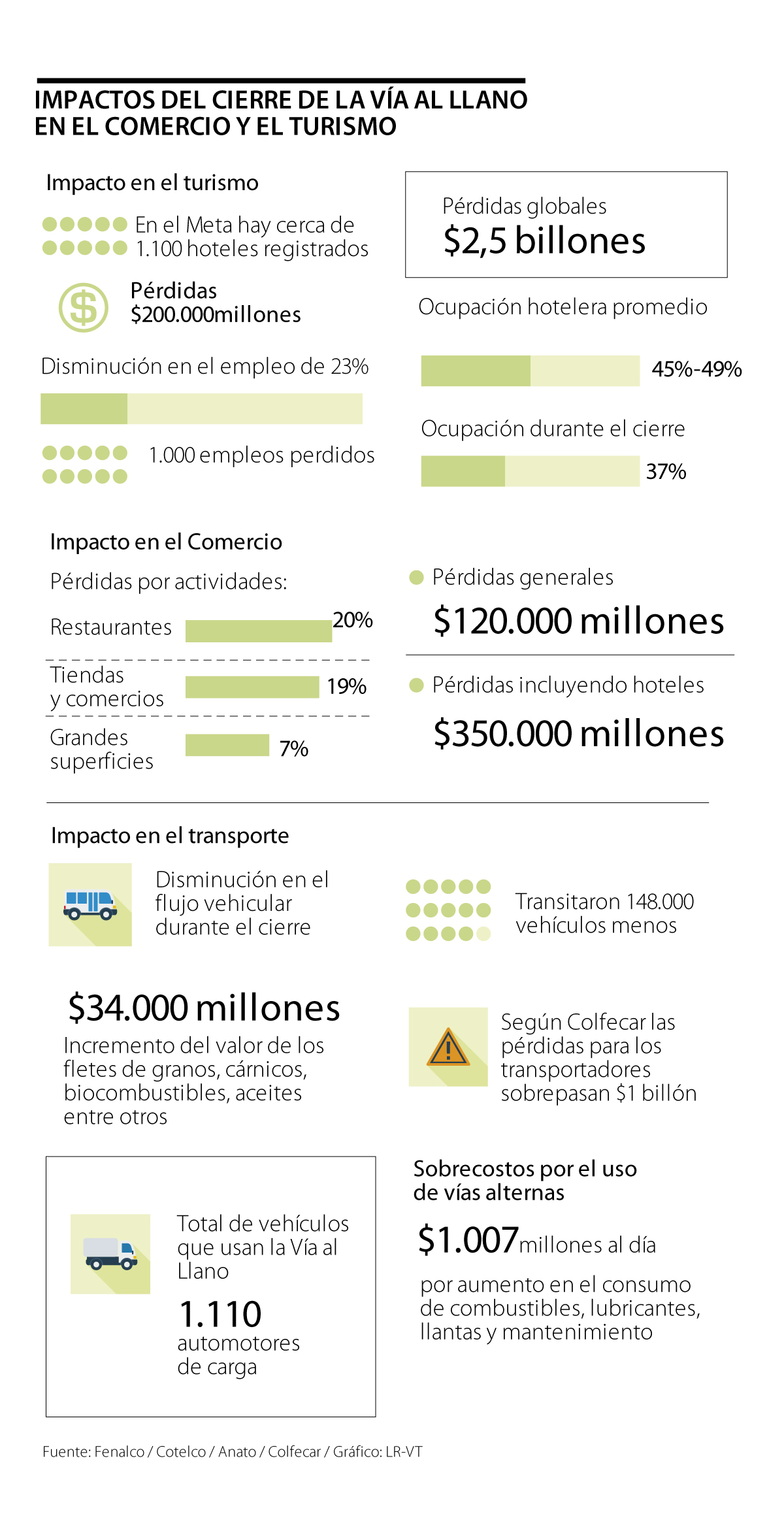 El sector comercio reportó pérdidas por $120.000 millones, los hoteles hablan de $200.000 millones, mientras que los transportadores registran $1 billón
