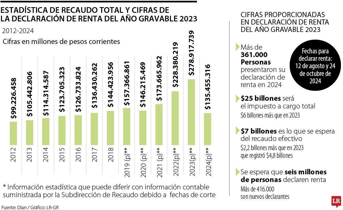 La entidad expresó que espera que seis millones de personas declaren, y proyecta un recaudo a cargo total de $25 billones; es decir $6 billones más que en 2023