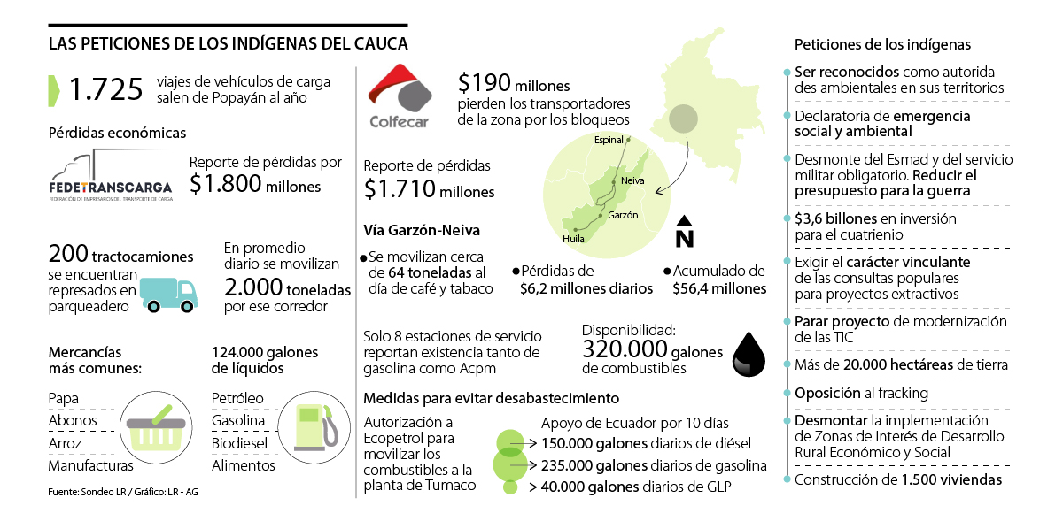 El paro en la vía panamericana ya deja cerca de $1.800 millones en pérdidas a los transportadores. Ayer, el Gobierno participó de nuevo en un comité con las comunidades.