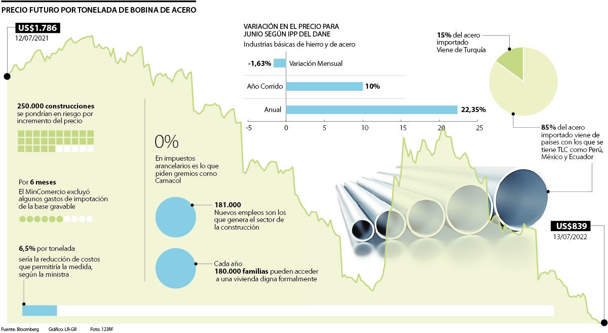 Al respecto, MinComercio afirmó que desde la cartera se han venido adoptando medidas para contrarrestar este aumento de precios. Entre estas, por ejemplo, está el decreto 1132 mediante el cual por seis meses se excluye de la base gravable de liquidación de los impuestos aduaneros los gastos de transporte y conexos en el acero importado.