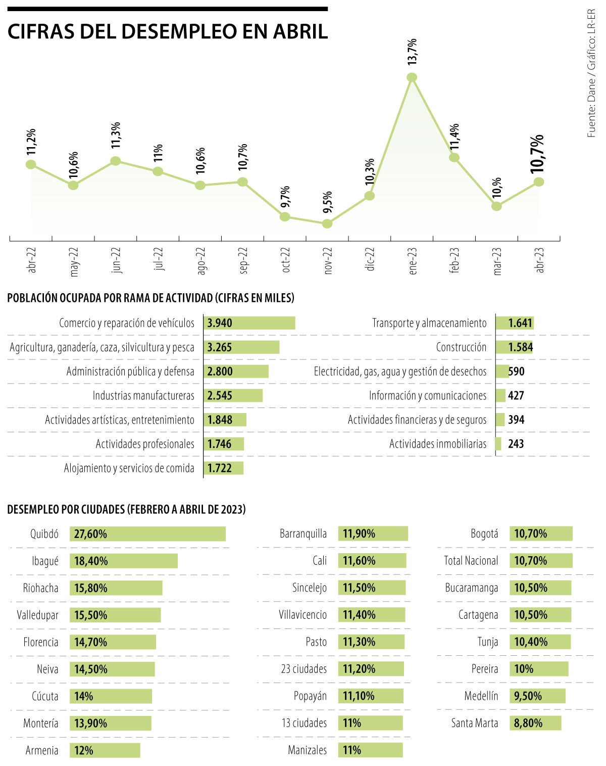 El pronóstico de la Asociación Nacional de Instituciones Financieras (Anif) había estimado la cifra del desempleo para abril en 10,6%. Además, se estima que en los próximos meses continuará deteriorándose, ante una baja dinámica en la generación de puestos de trabajo que convive con pronósticos de desaceleración en la actividad económica.