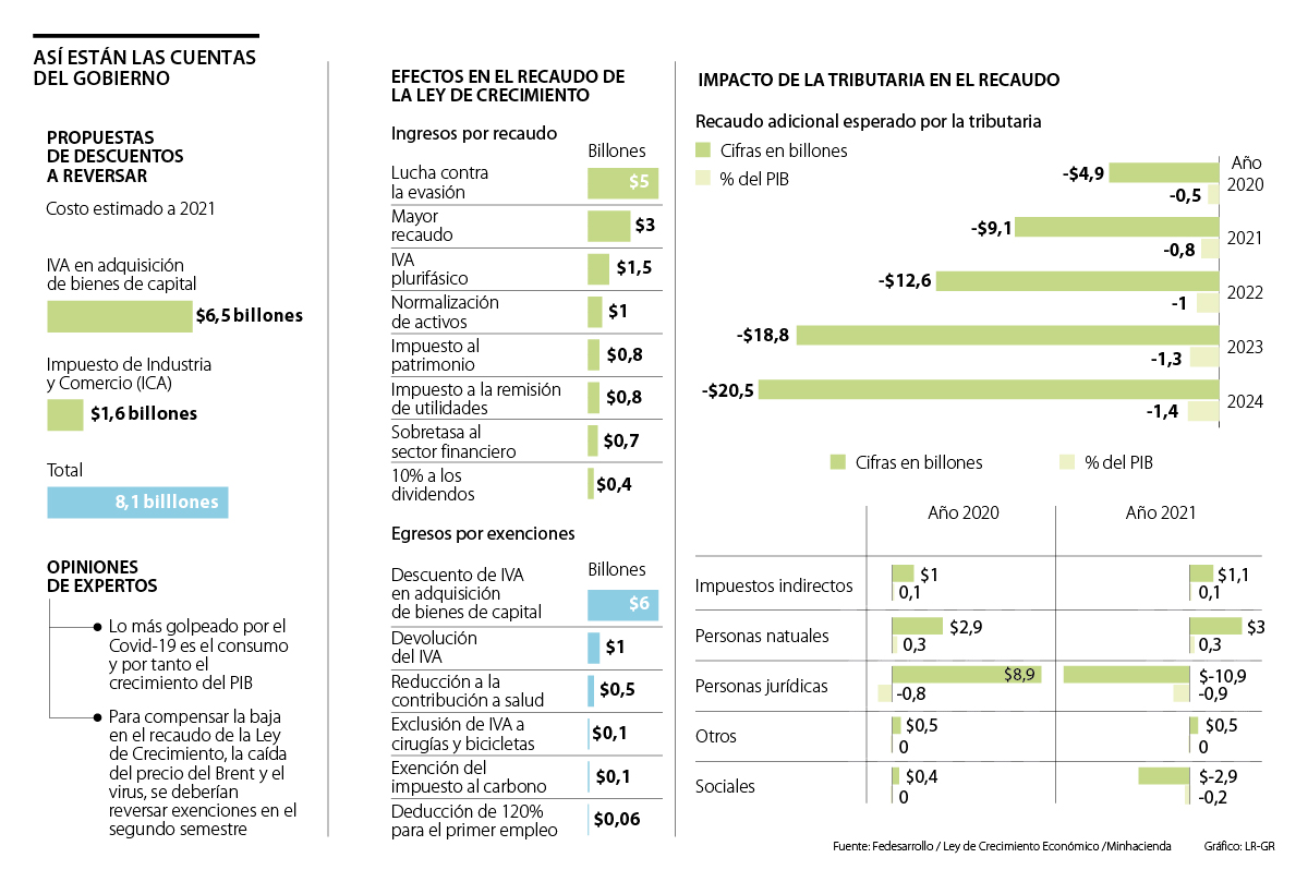 Con la reaprobación de la última reforma tributaria, llamada Ley de Crecimiento Económico, los analistas proyectaban que el próximo año la Nación dejaría de recibir $9,1 billones por cuenta de las exenciones contempladas en el articulado, principalmente para las empresas.