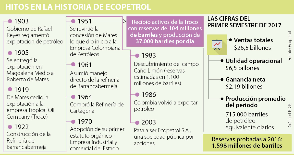 Aunque la historia de la compañía se remonta a 1903 cuando el presidente Rafael Reyes reglamentó la explotación de petróleo en el país, el hito fundacional de la compañía es el 25 de agosto de 1951.