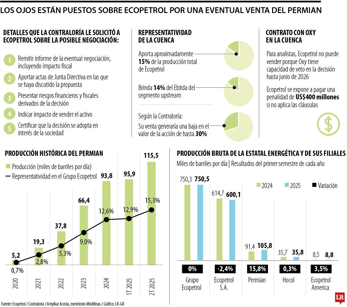 El ente de control añadió que el Permian, además de representar 15% de la producción del grupo, significa 14% del Ebitda del segmento upstream, siendo este uno de los activos más rentables de la organización. Enfatizó que una venta podría generar una caída de hasta 30% en la acción, con efectos para su sostenibilidad financiera.