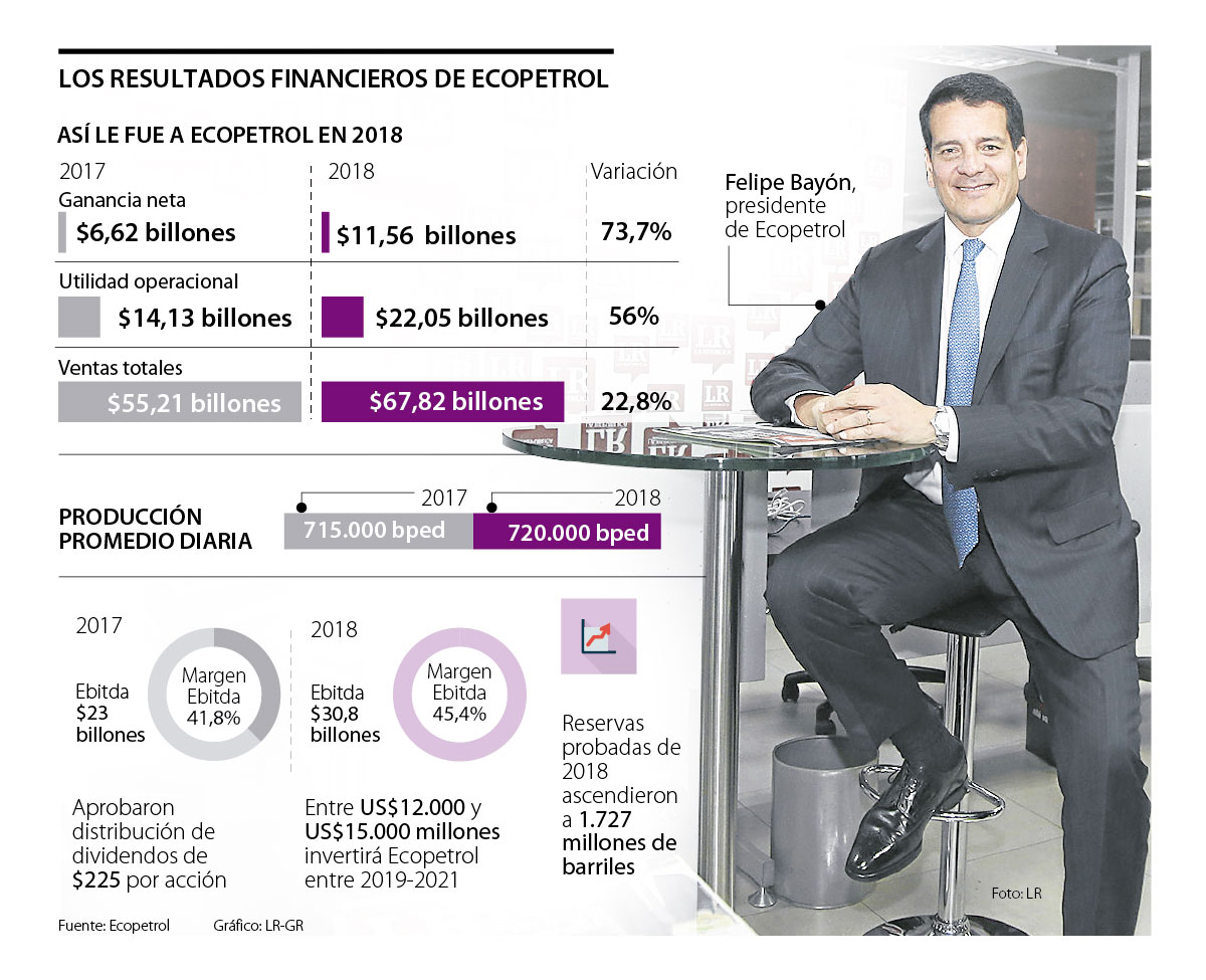 Las utilidades por $11,5 billones que dejó Ecopetrol al cierre de 2018 fueron una de las razones que llevaron a la petrolera a anunciar su cuarta entrega de dividendos más alta de la historia y su plan de inversiones a mediano plazo. Tras alcanzar 720.000 barriles diarios en promedio y unas reservas de 1.727 millones de barriles el año pasado, los accionistas de la compañía aprobaron la distribución de dividendos de $225 por acción, una cifra que representó un aumento de 52,8%, frente a los $89 que se entregaron en 2017.