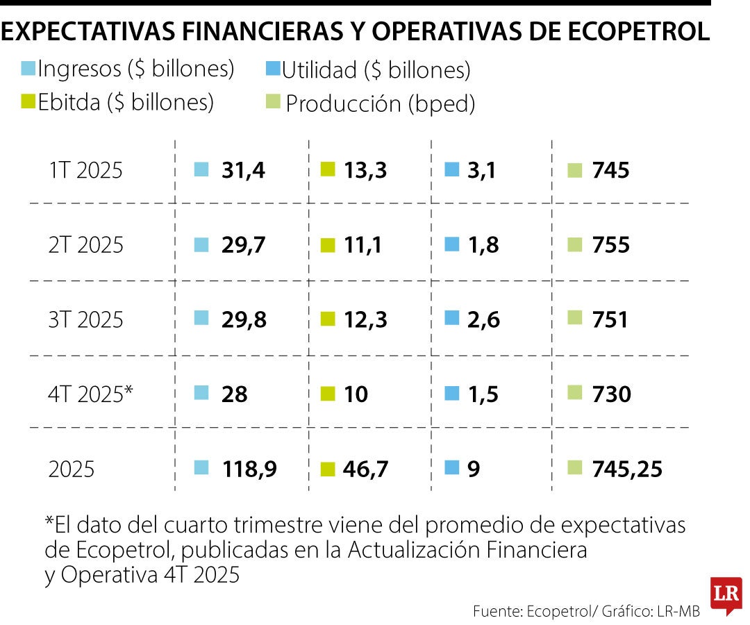 Precisamente, la primer proyección es de Ecopetrol, que en su Actualización Financiera y Operativa 4T 2025, estimó que en el periodo octubre-diciembre habrían generado $1,5 billones en utilidades (de un promedio que ronda entre $1 billón y $2 billones).