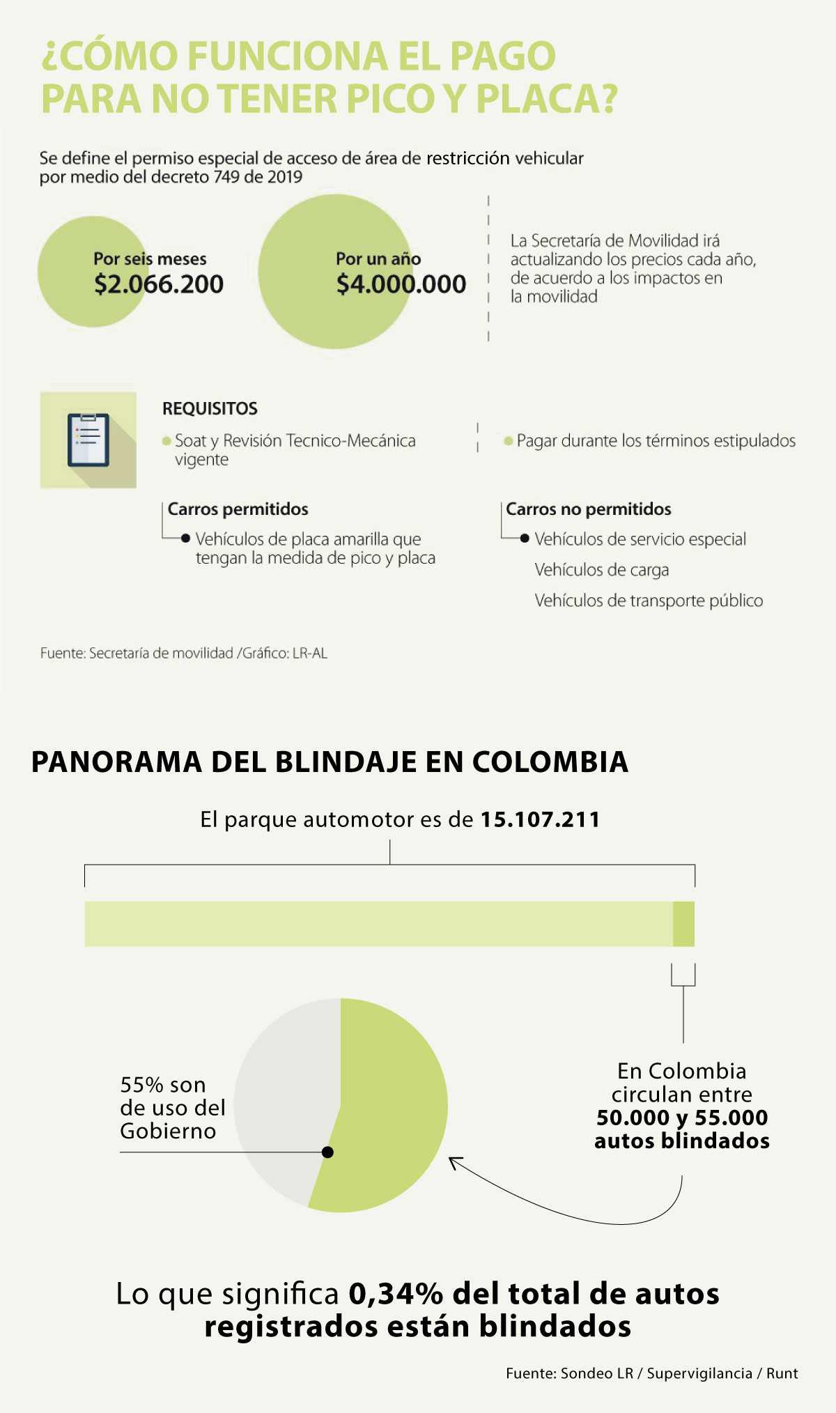 El secretario de Movilidad de Bogotá, Juan Pablo Bocarejo, en su momento explicó que con esto buscan que las personas que blindan sus carros para estar exentos de la medida no lo hagan, y que si lo hacen le aporten recursos al Distrito, al igual que lo harán los carros que no tengan esta adecuación.