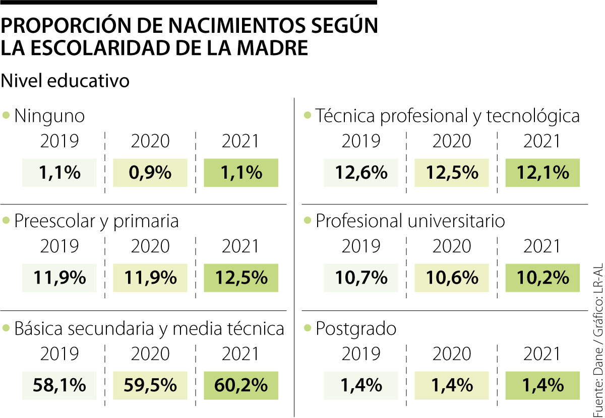 Por medio de las estadísticas vitales de nacimientos y defunciones que realizó el Dane, se pudo conocer el nivel de escolaridad que habían alcanzado las personas al momento de tener un hijo hasta julio de 2021 y compararlo con años anteriores.