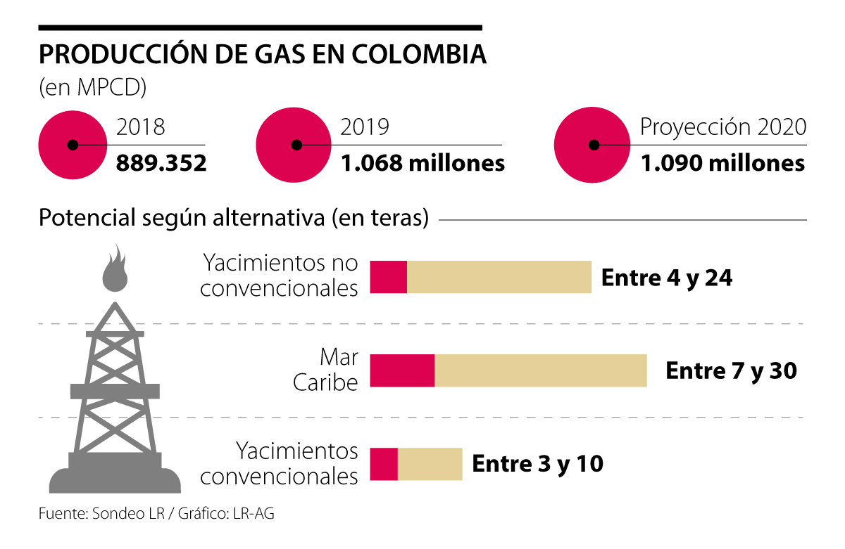 La industria productora de gas natural se ha reactivado. En el 2019 la producción alcanzó los 1.068 millones de pies cúbicos promedio día (Mpcd), lo que supone un incremento del 9,4% frente al año anterior.