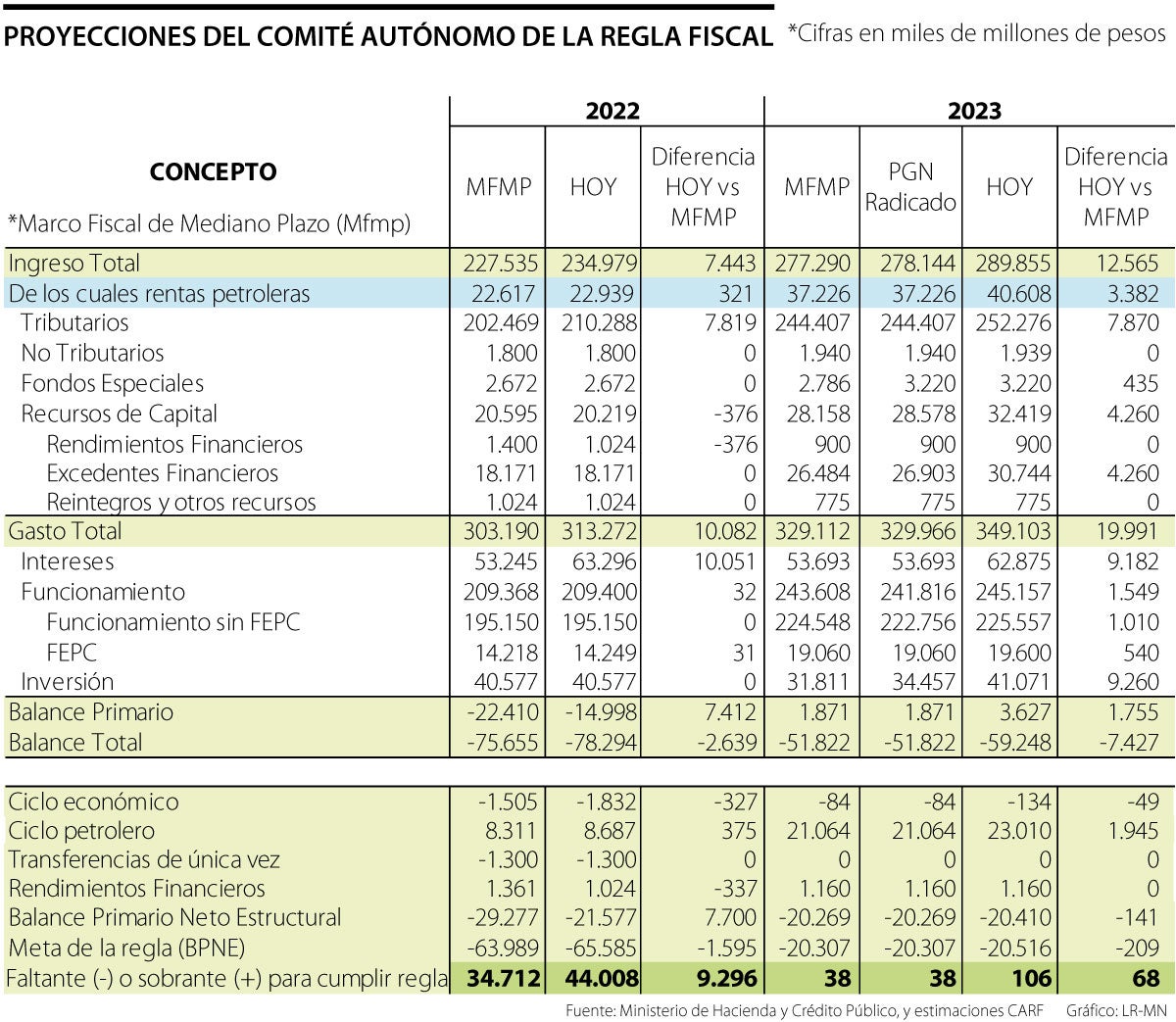 Pero destaca que el escenario fiscal y presupuestal para 2022 y 2023, se ha beneficiado de un recaudo mayor al esperado, producto de la recuperación económica, que compensa los impactos de la inflación de precios.