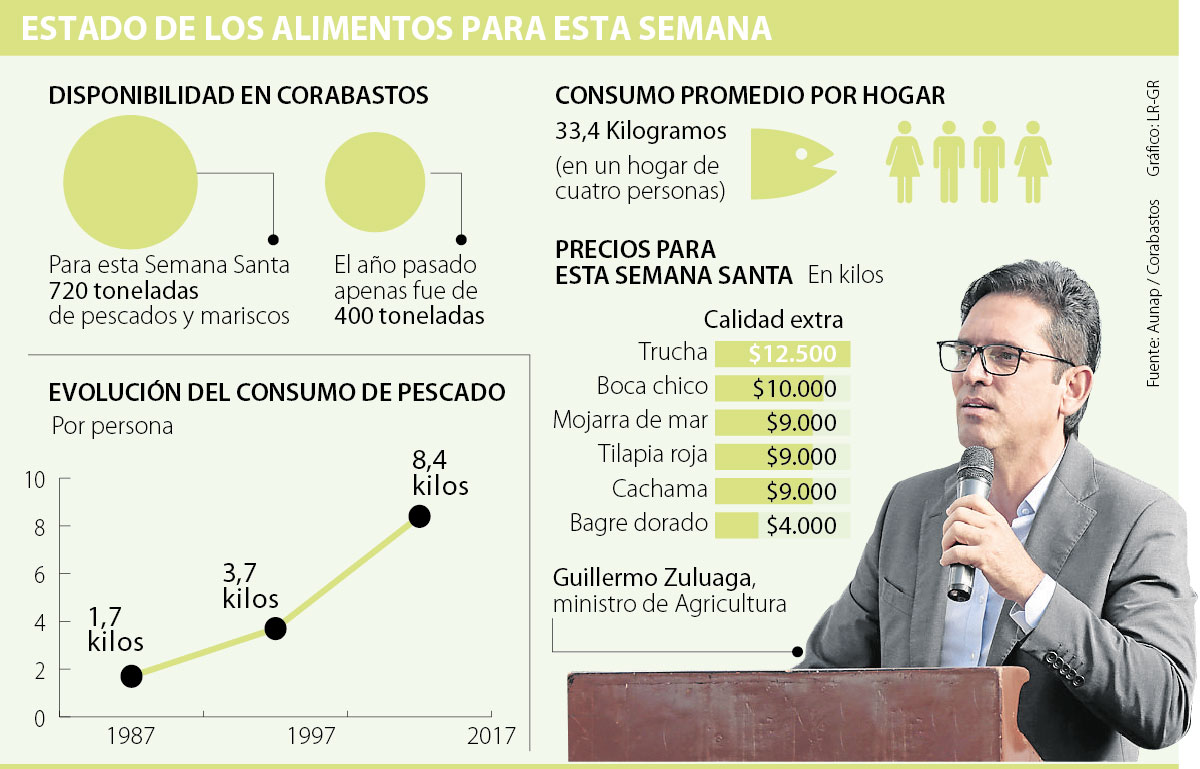 Los productores acuícolas se anticiparon a la alta demanda de pescado y mariscos de Semana Santa, hecho que se evidencia en la disponibilidad en las centrales de abasto. El ministro de Agricultura, Guillermo Rivera, contó a LR cómo está la oferta de alimentos para la Semana Mayor.