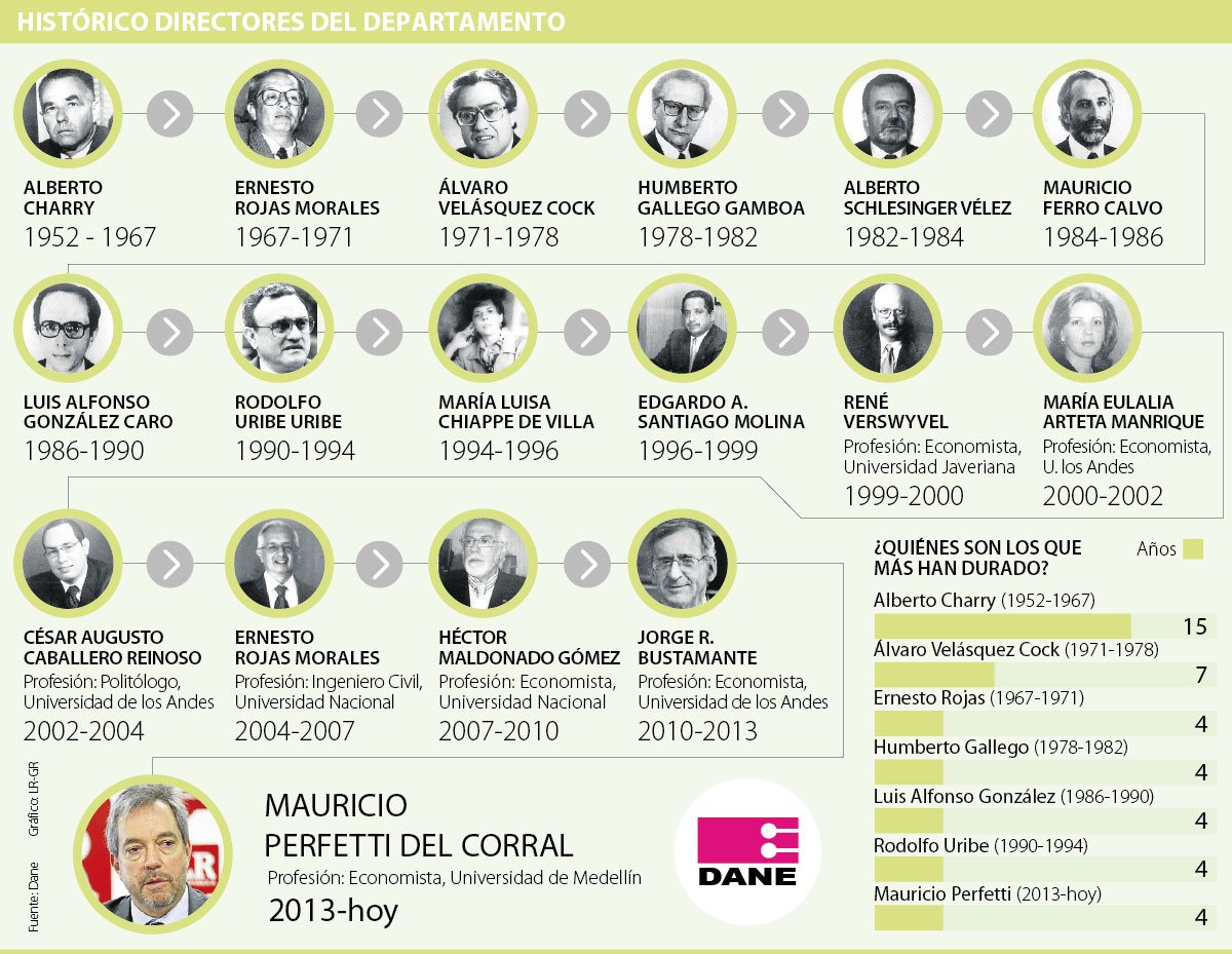 De acuerdo con un sondeo que realizó LR y a la información histórica de la entidad, por la institución de estadística nacional han pasado 17 funcionarios que en promedio han durado 3,8 años cada uno, aunque hay algunos que tienen una trayectoria de hasta siete y 15 años en el cargo.