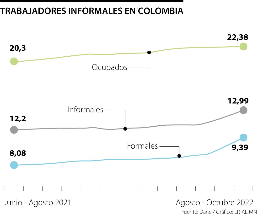 Según el Dane, en el décimo mes del año, de los 22,6 millones de trabajadores, 13 millones lo hacían sin tener un contrato formal