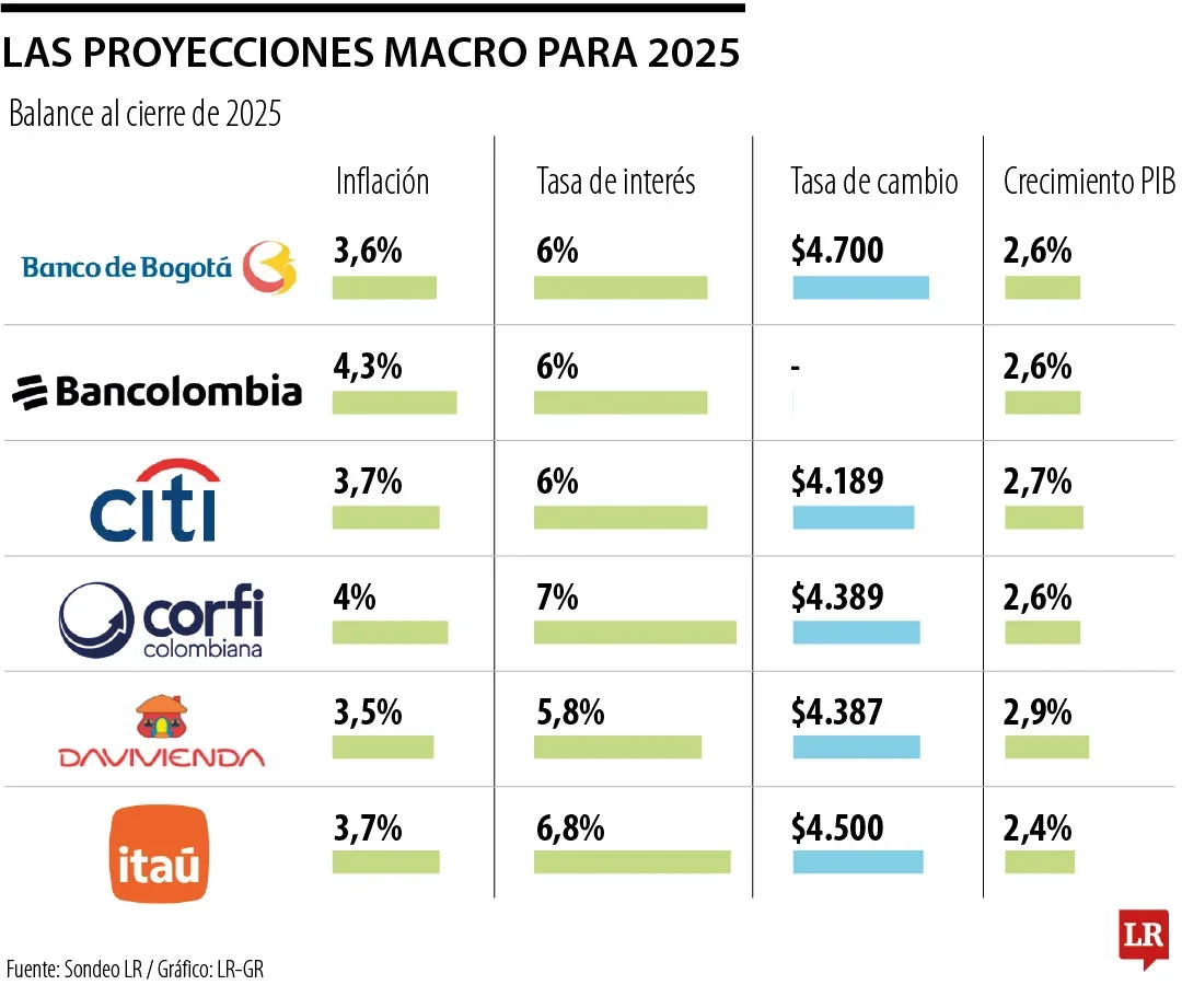 Por ejemplo, Davivienda proyecta que el IPC cierre 2025 en 3,5%, siendo una de las proyecciones más bajas entre los analistas, en contraste, Bancolombia estima que la inflación baje hasta 4,3%.