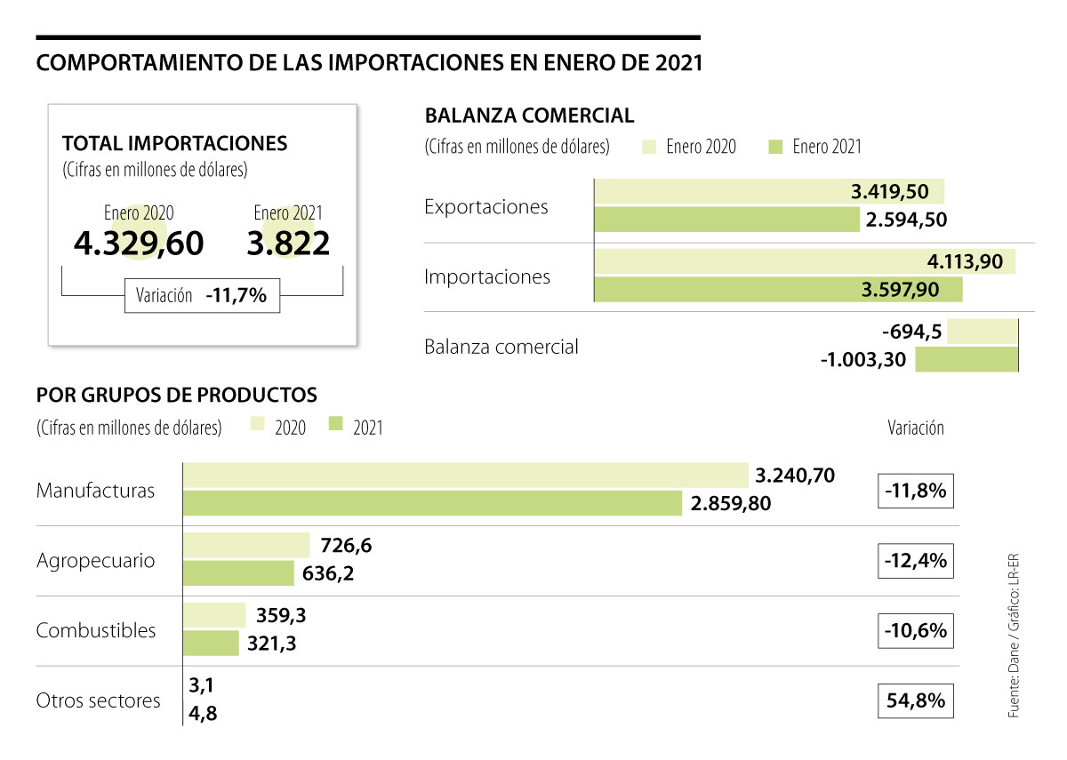 Según las cifras del Dane, las importaciones en enero sumaron US$3.822 millones, lo que significó una disminución de 11,7%