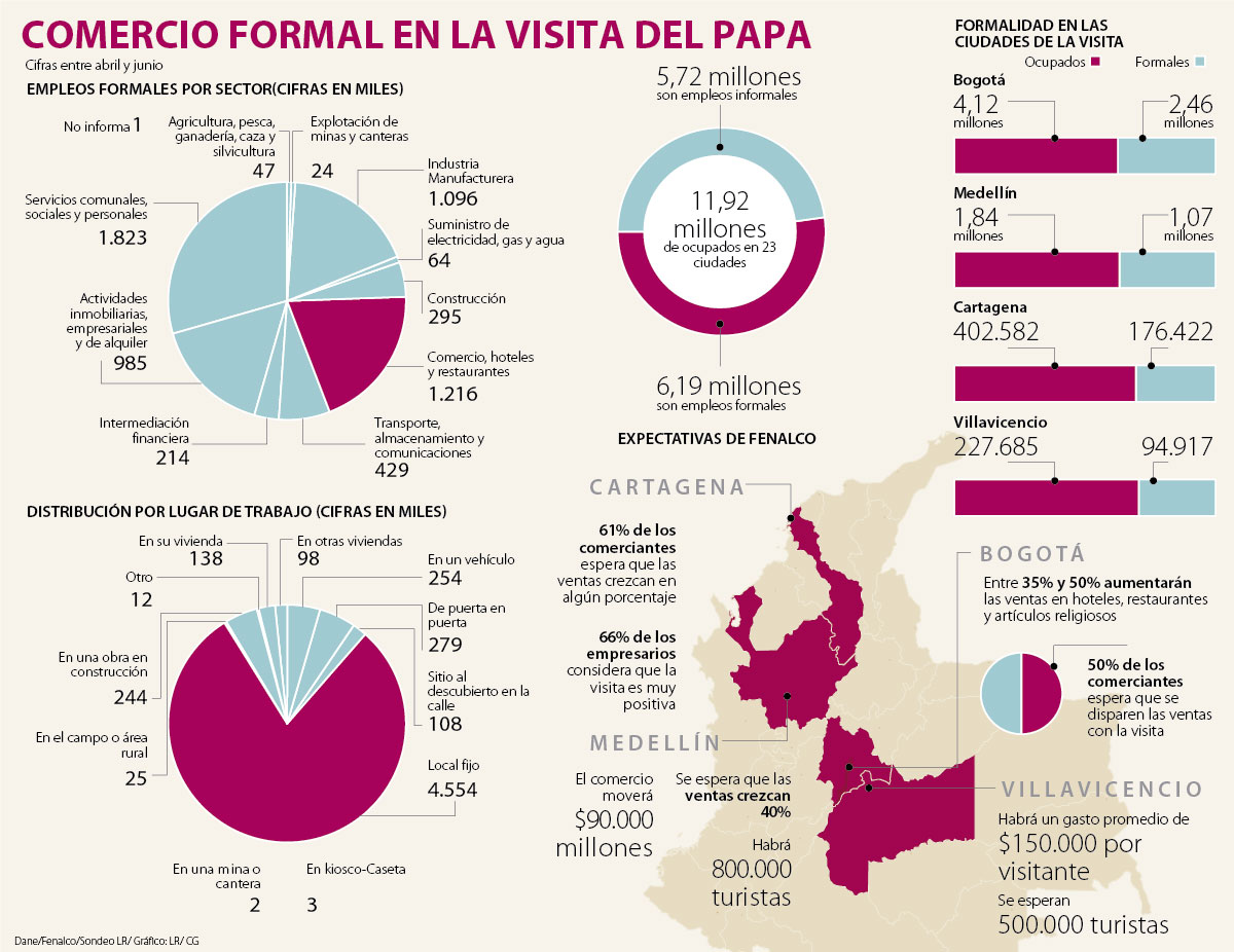 Comerciantes de Bogotá, Villavicencio, Medellín y Cartagena esperan que sus ventas aumenten entre 10% y 50% como consecuencia de la tercera visita papal.