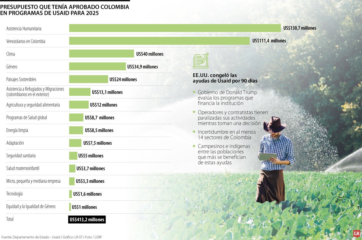 Para este año, el monto aprobado para Colombia era de US$413,2 millones que se desglosaba en al menos 14 sectores, es decir que este monto, el país podría dejarlo de recibir si se oficializa la cancelación de la agencia por parte del gobierno de Estados Unidos.