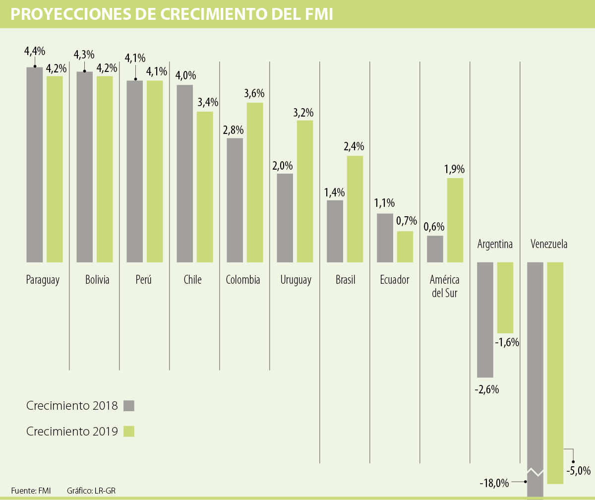 A nivel regional, el crecimiento proyectado para los países de Sudamérica es de apenas 0,6%, arrastrado por las malas proyecciones para Venezuela y Argentina.