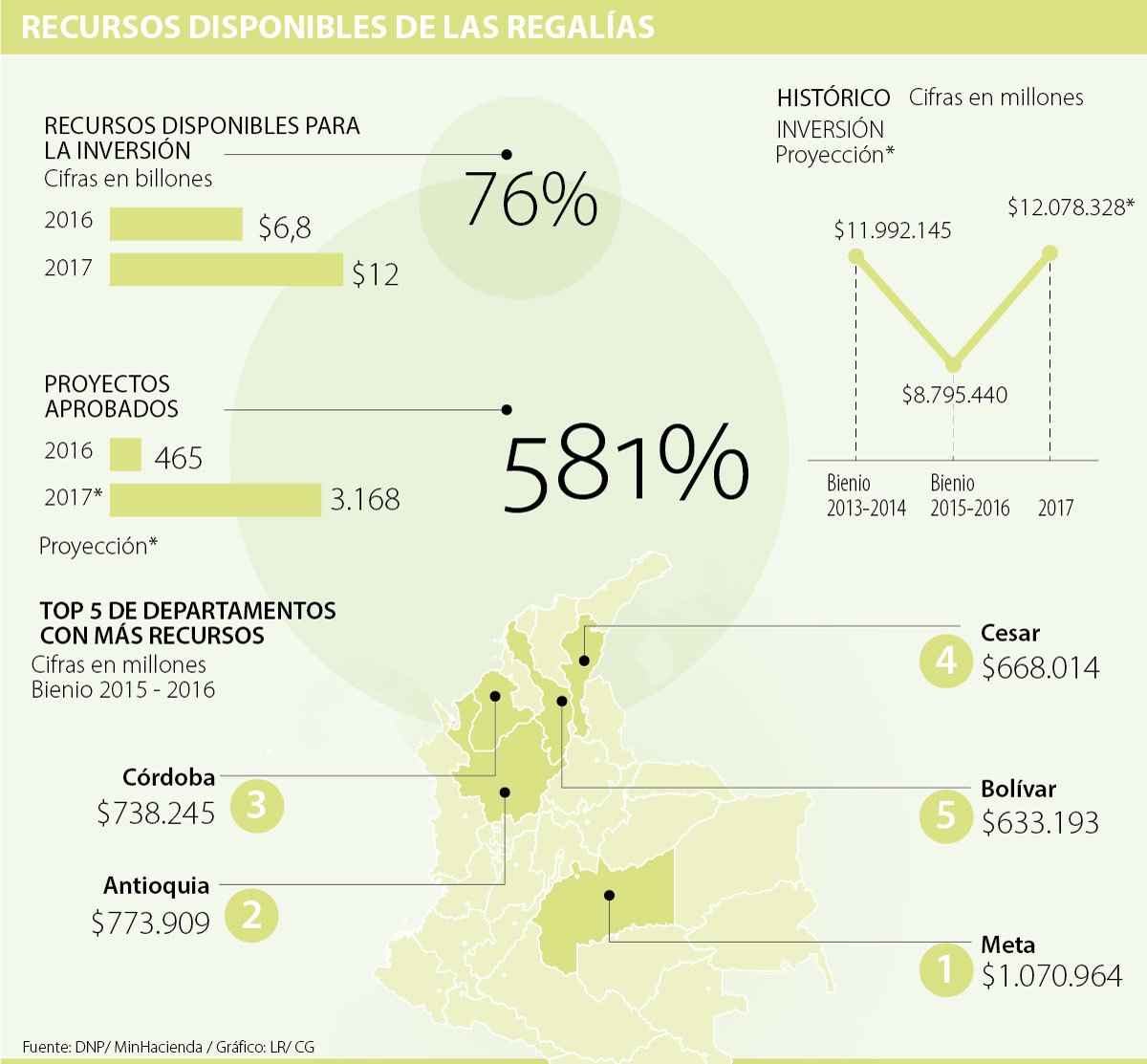 Y es que la apuesta del Gobierno para este año es invertir $7 billones, de $12 billones que hay ahorrados en este momento. Esto representaría un incremento de 154% en los proyectos de ejecución, al comparar las cifras de 2016 y 2017.