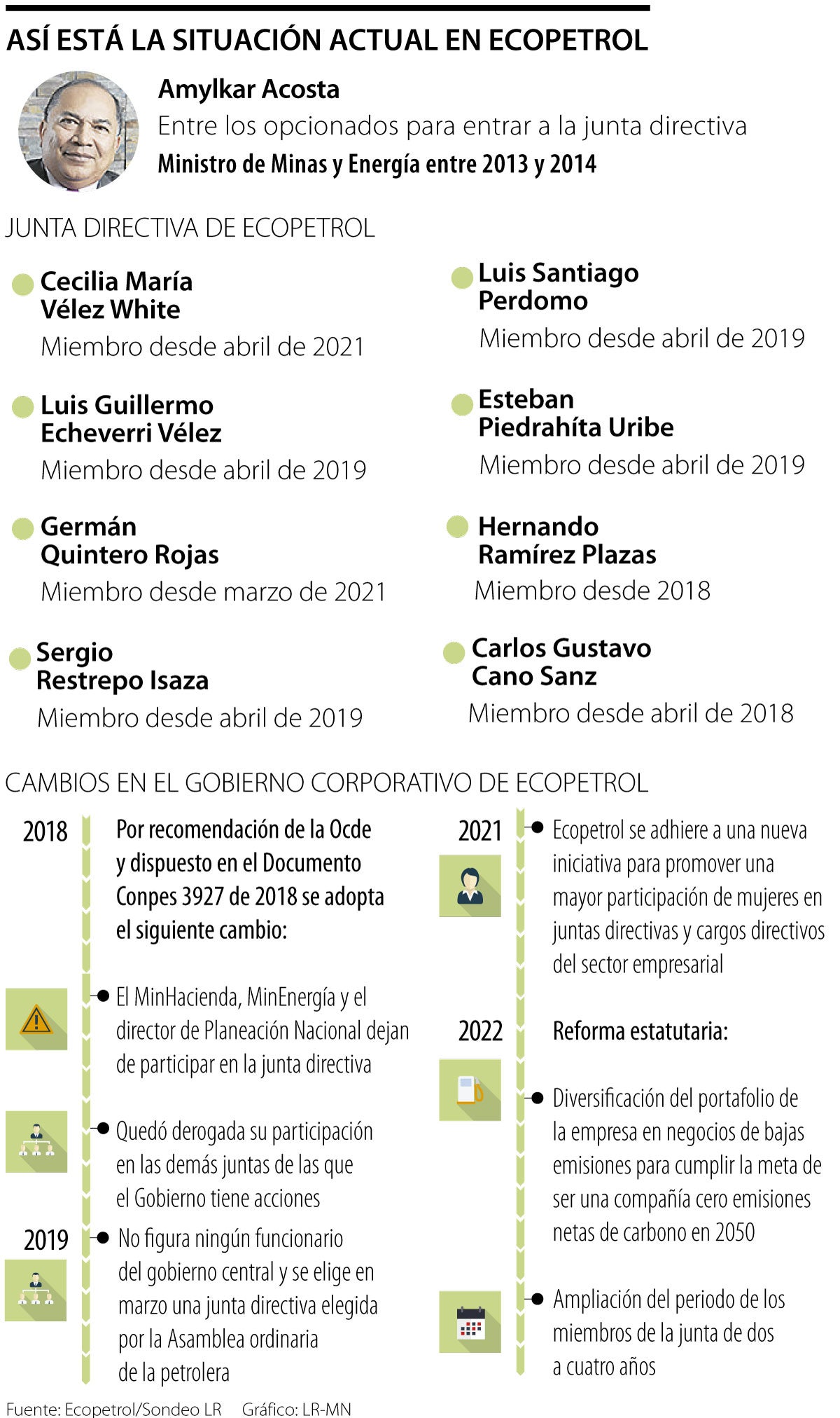 El sonajero de los posibles reemplazos estaría compuesto según reportes de Bloomberg por el exministro de Minas y Energía, Amylkar Acosta, quien ya estuvo en la Junta Directiva de la compañía entre 2013 y 2014 durante el primer Gobierno del expresidente Juan Manuel Santos.