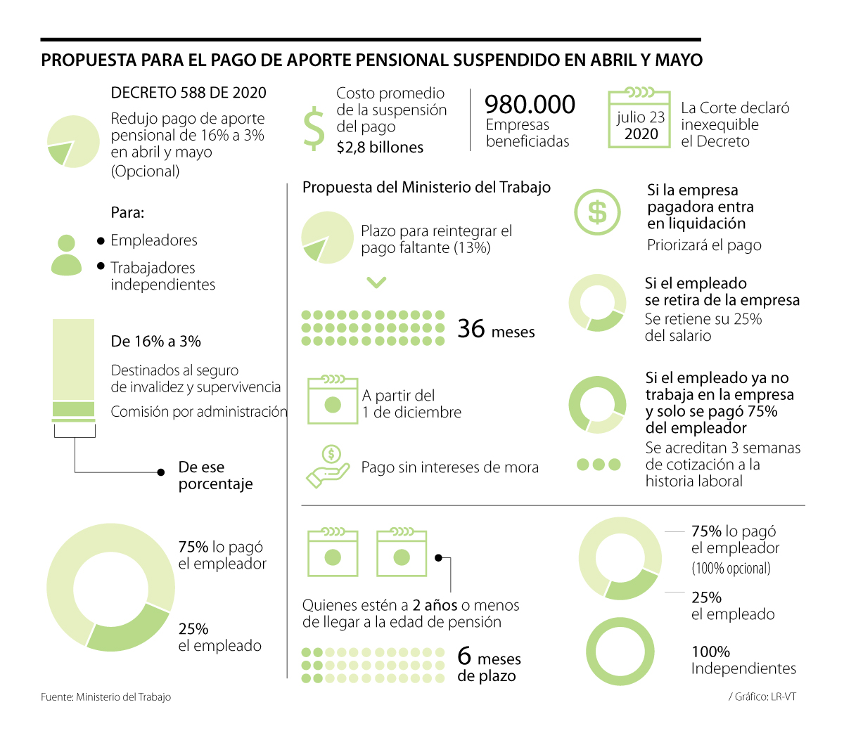 El pasado 15 de abril, el Gobierno emitió el Decreto 558 de 2020, con el cual les permitió a las empresas y trabajadores independientes disminuir opcionalmente sus aportes al sistema general de pensiones desde 16% a 3% durante abril y mayo, para generar un alivio en el flujo de caja de los empleadores ante la crisis económica que causó la pandemia, pero este se cayó y ahora se ven opciones para hacer el pago.