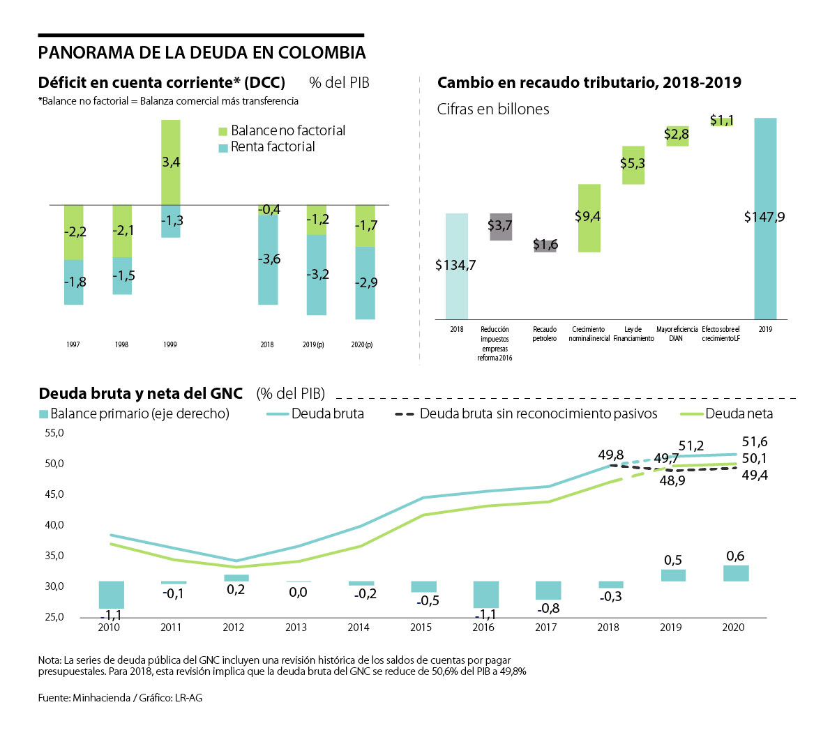 Para las calificadoras de riesgo soberano, una de las principales debilidades de la economía colombiana es que el déficit de cuenta corriente ha venido aumentando de manera significativa desde 2017 y según previsiones del propio Ministerio de Hacienda, este año la proporción aumentaría hasta alcanzar 4,6%, 0,2% por encima de lo registrado en 2019.