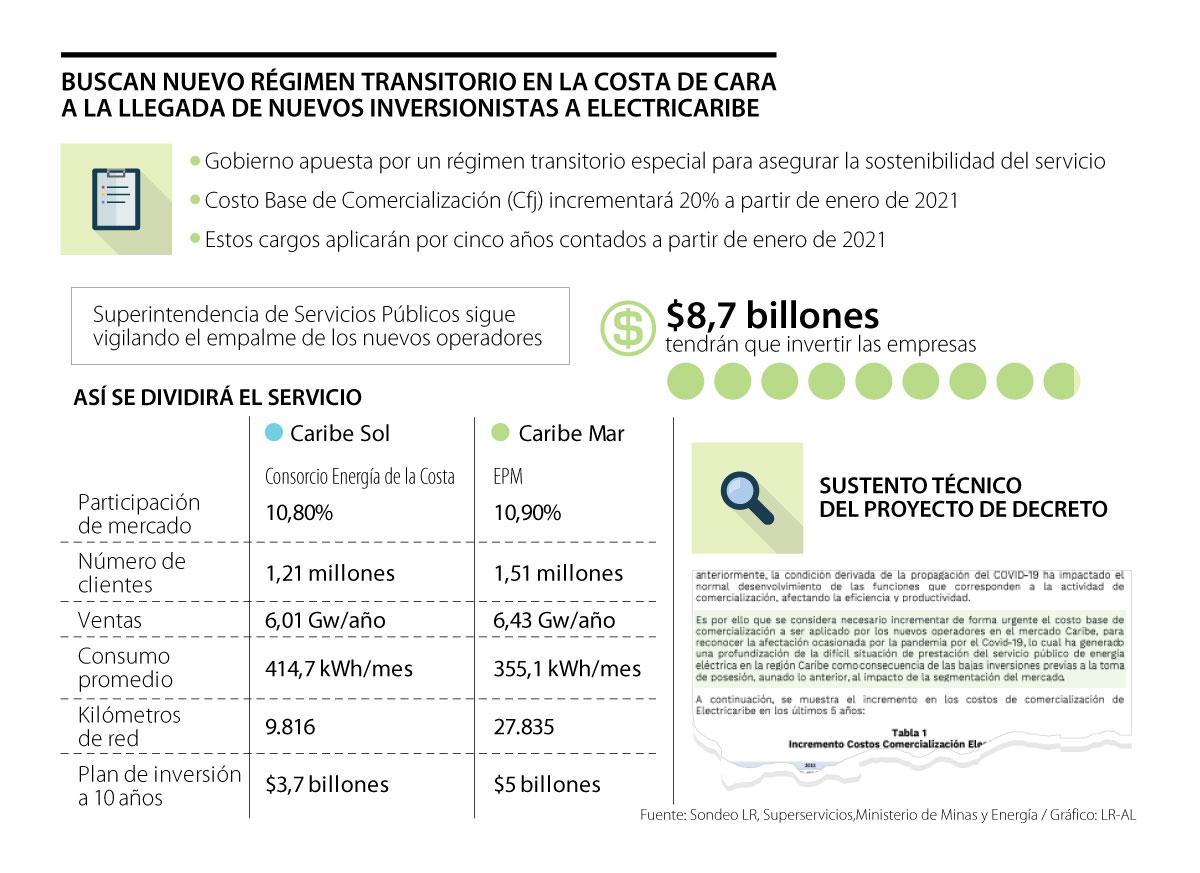 Una de las justificaciones que detalla el Ministerio de Minas y Energía en el documento es que con la segmentación del mercado (Caribe Sol y Caribe Mar) se puede impactar el costo base de comercialización en 10%. Por eso, es necesario incrementar de forma “urgente” ese costo, para reconocer la afectación ocasionada por la pandemia del covid-19 a los nuevos operadores.