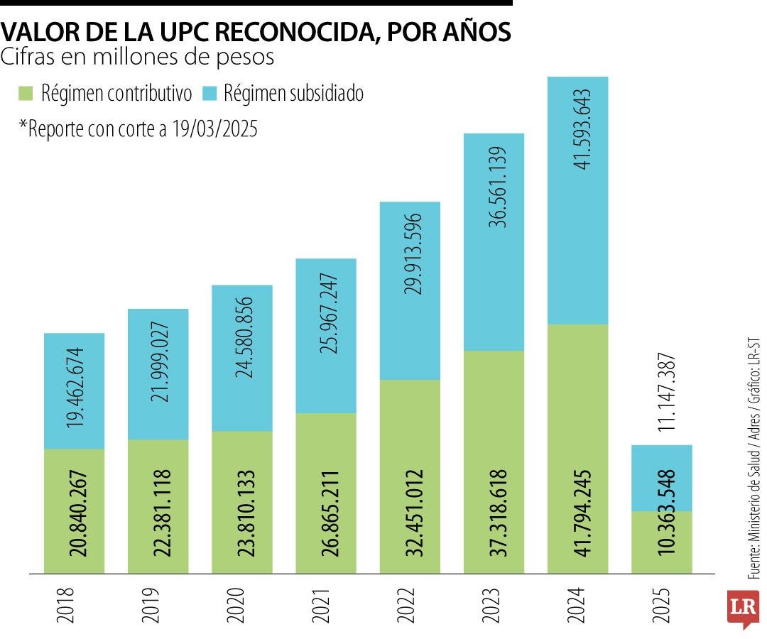 El Gobierno aseguró que están al día con los presupuestos máximos. la Adres, reveló que el pago por UPC aumentó de $62 billones en 2022 a $88 billones para este año