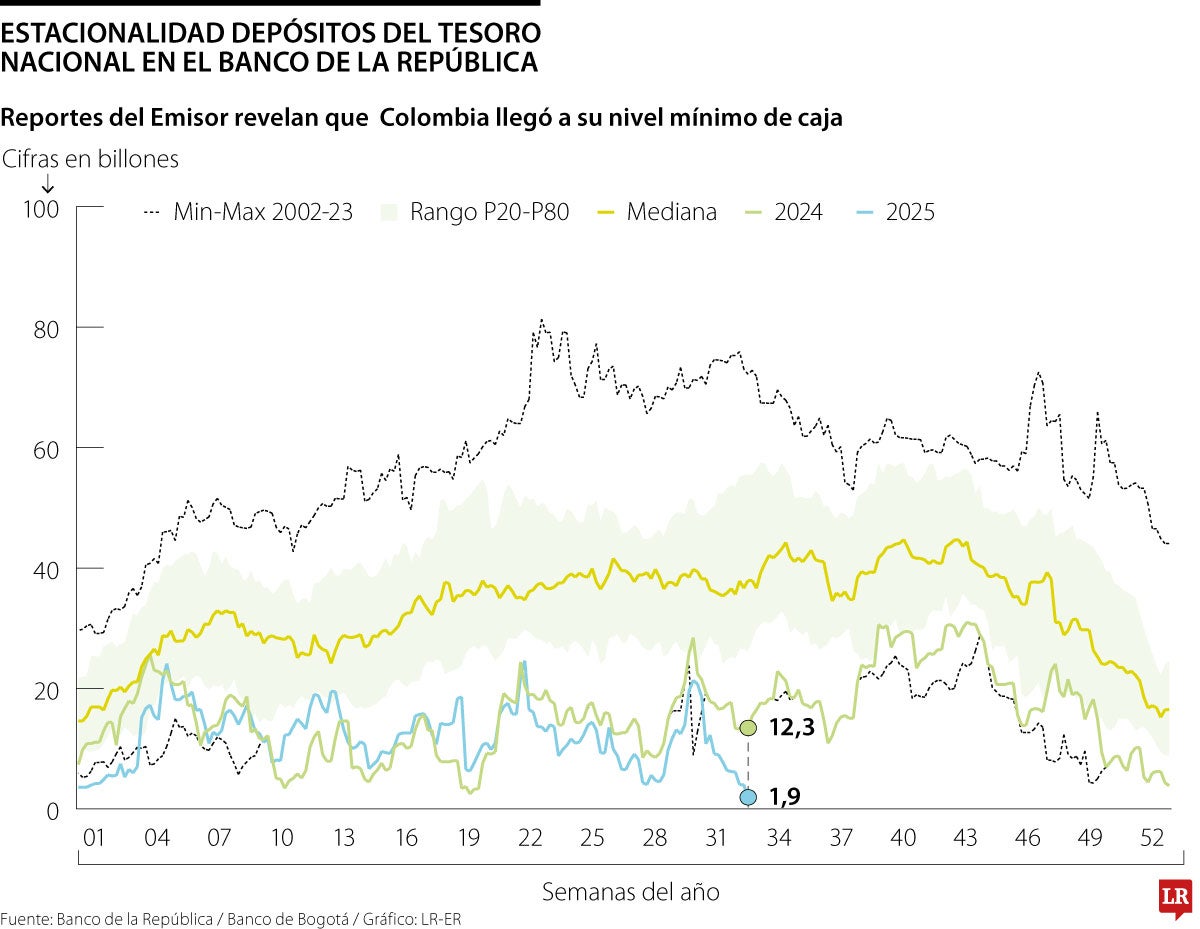 El más reciente reporte de saldos disponibles del Tesoro Nacional en el Banco de la República revela que el Gobierno solo tiene $1,9 billones en caja. En otras palabras, esa es la plata disponible que tiene el Estado para pagar sus cuentas.