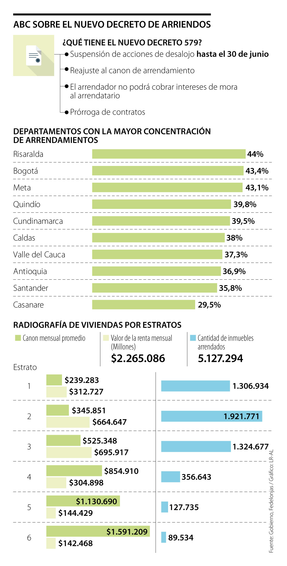 Y es que la razón por la cual se alivia el bolsillo de unos, pero se afecta el de otros es debido a que la renta mensual de las viviendas en alquiler asciende a $2,26 billones, un monto que no llegaría ahora a todos los propietarios. De hecho, es de resaltar que esta problemática también se ve, pues, según Fedelonjas, por cada 100 viviendas que se construyen, entran 18 en alquiler.