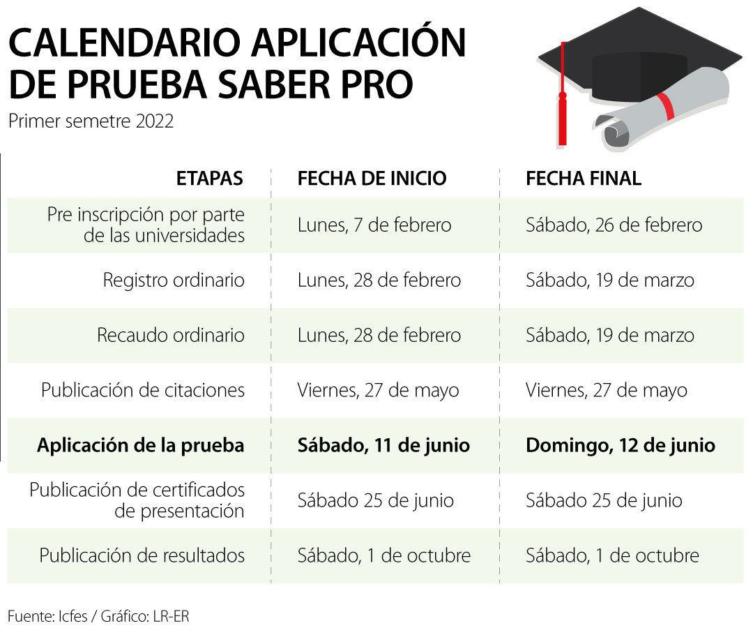 De esta forma, la primera aplicación de la prueba Saber Pro será el sábado 11 y domingo 12 de junio y la segunda aplicación será en octubre. Ospina también señaló que en el año pasado se evaluó a más de 220.000 estudiantes y el objetivo de esta modificación es que se agilicen los procesos de graduación.