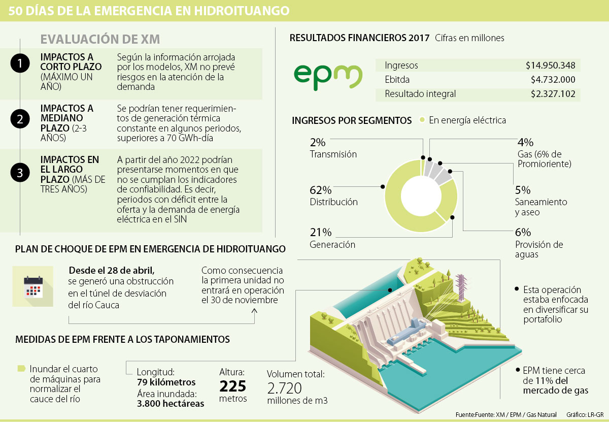 Para Tabáres, la emergencia en la presa no afectará los recursos para Medellín en 2019, ya que la hidroeléctrica solo iba a generar recursos en diciembre, así que su contribución al presupuesto de la ciudad era poco comparado con el resto del portafolio.