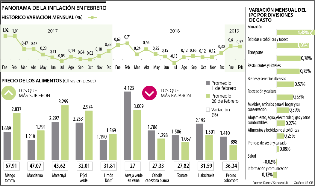 Precisamente, para el dato de la inflación de febrero las expectativas del mercado estaban en que los alimentos, los gastos en vivienda y en transporte tuvieran la mayor incidencia en la variación del Índice de Precios del Consumidor (IPC) del mes.