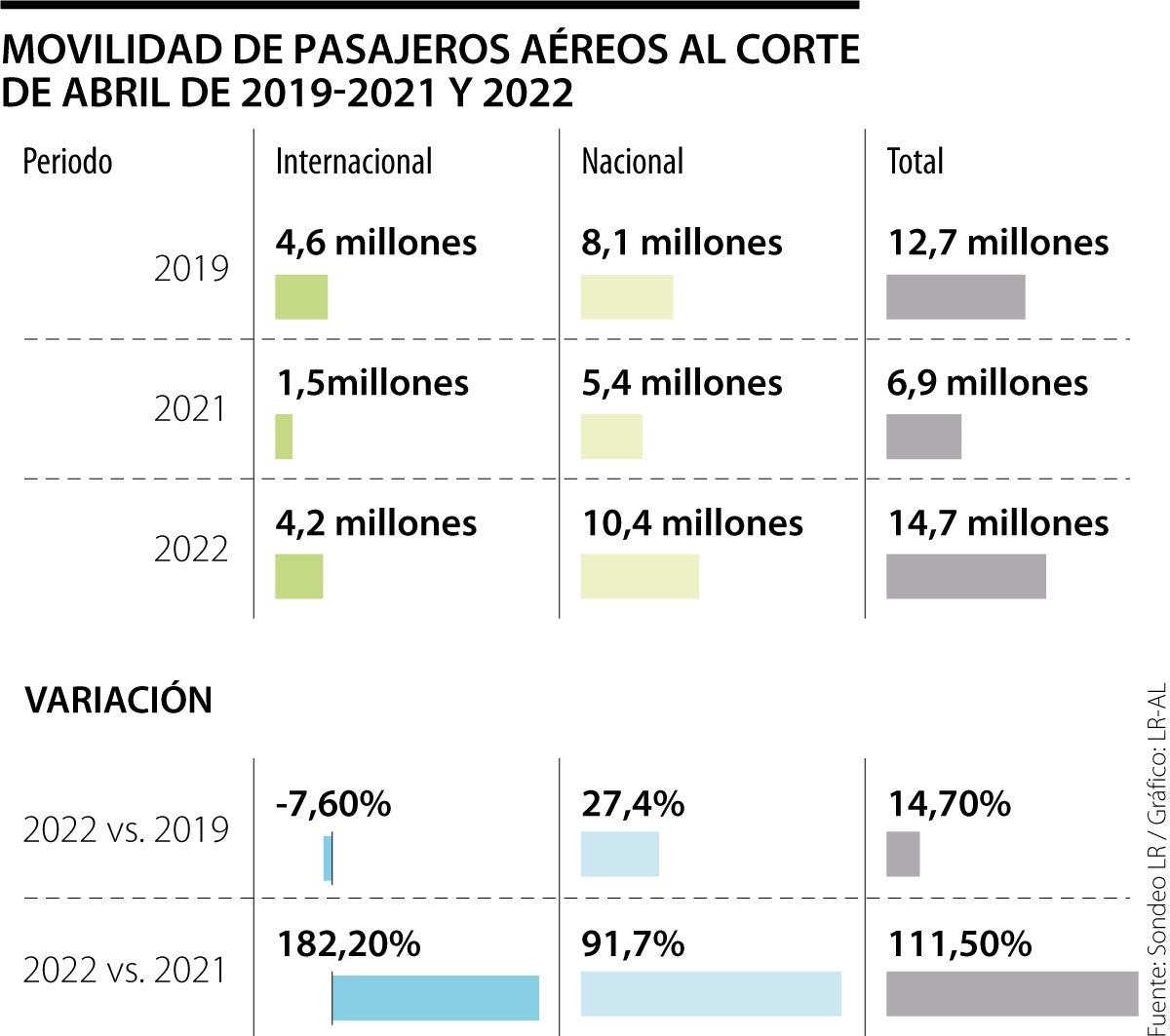 El tráfico de pasajeros tuvo una variación de 111,2% entre enero y abril frente al 2021. Un incentivo será la campaña “vuela sin parar”