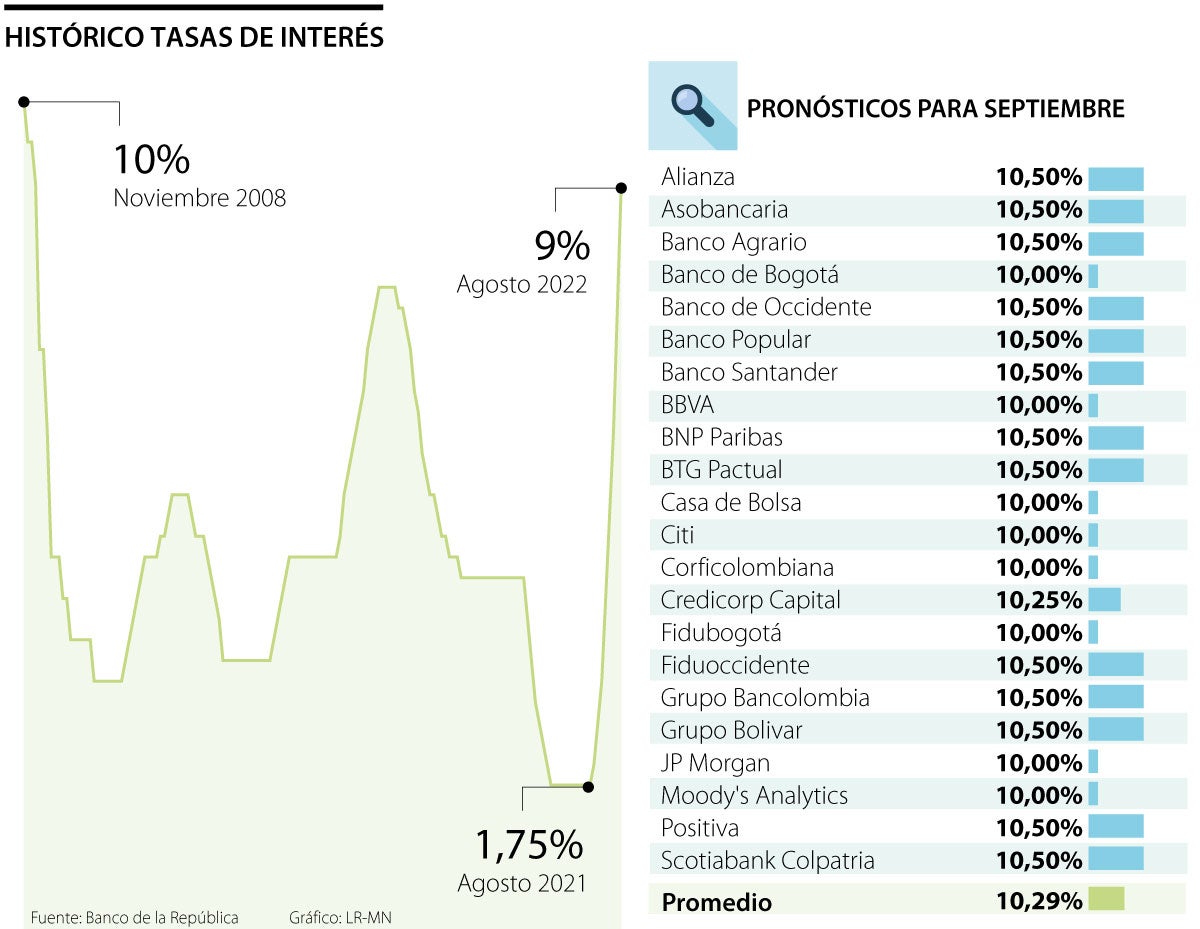 Analistas ven posible que el Banco de la República suba, una vez más, la tasa de interés. Para esta oportunidad, la cifra llegaría a entre 10% y 10,5% según la Encuesta de Expectativas de Analistas hecha por Citi para septiembre.